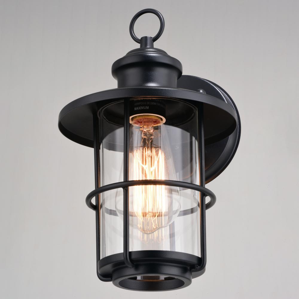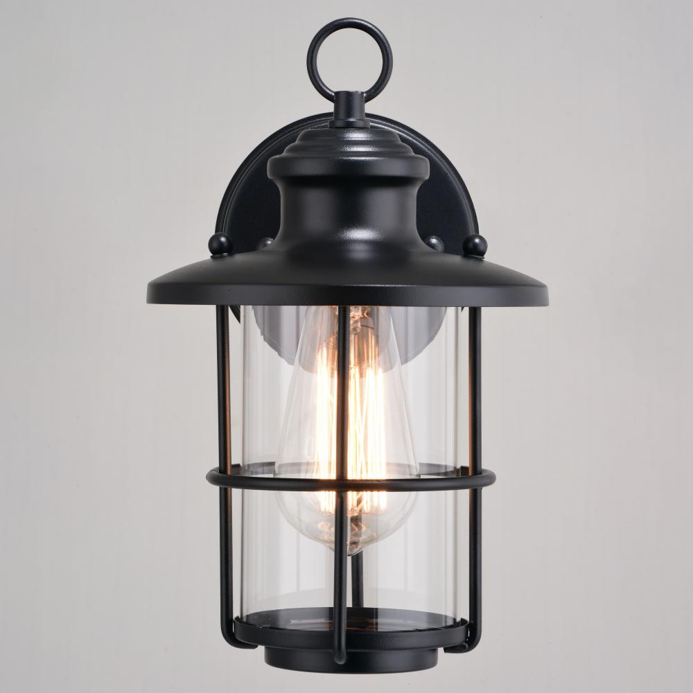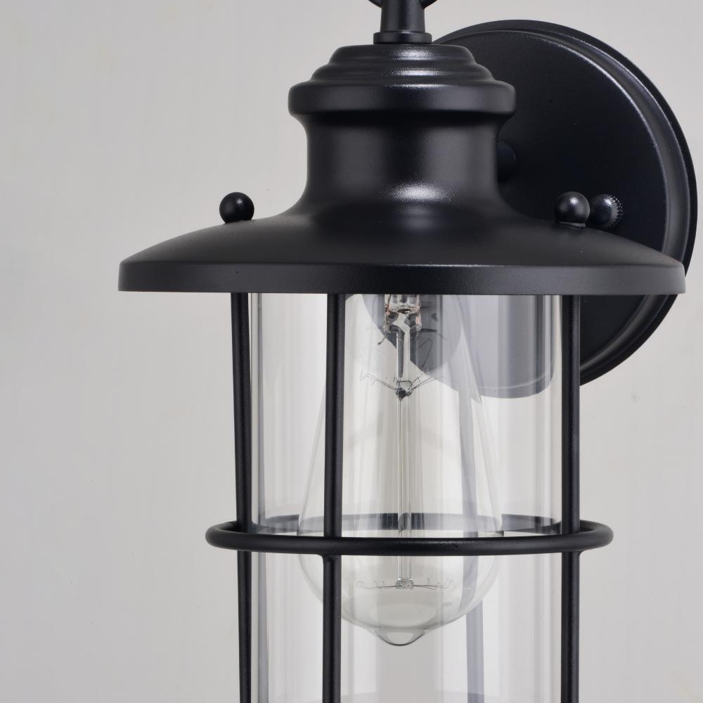 The Lake Shore collection is a modern take on classic coastal lantern design. The textured black finish and caged clear cylindrical glass shade will enhance any home’s exterior. The timeless rustic structure makes it a perfect piece for use both indoors or out. From your covered porch, entryway, or garage to your family room or bath.