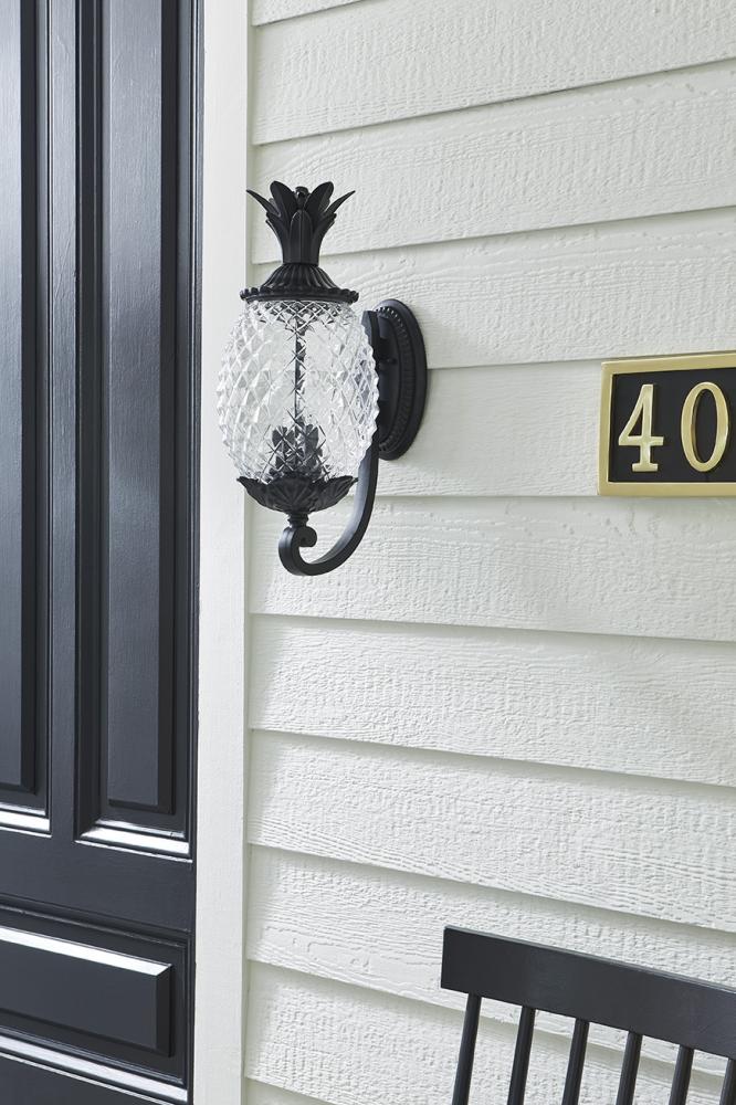Durable non-rusting cast aluminum, Features clear pineapple cut globe, Perfect for a front door, the symbol of hospitality