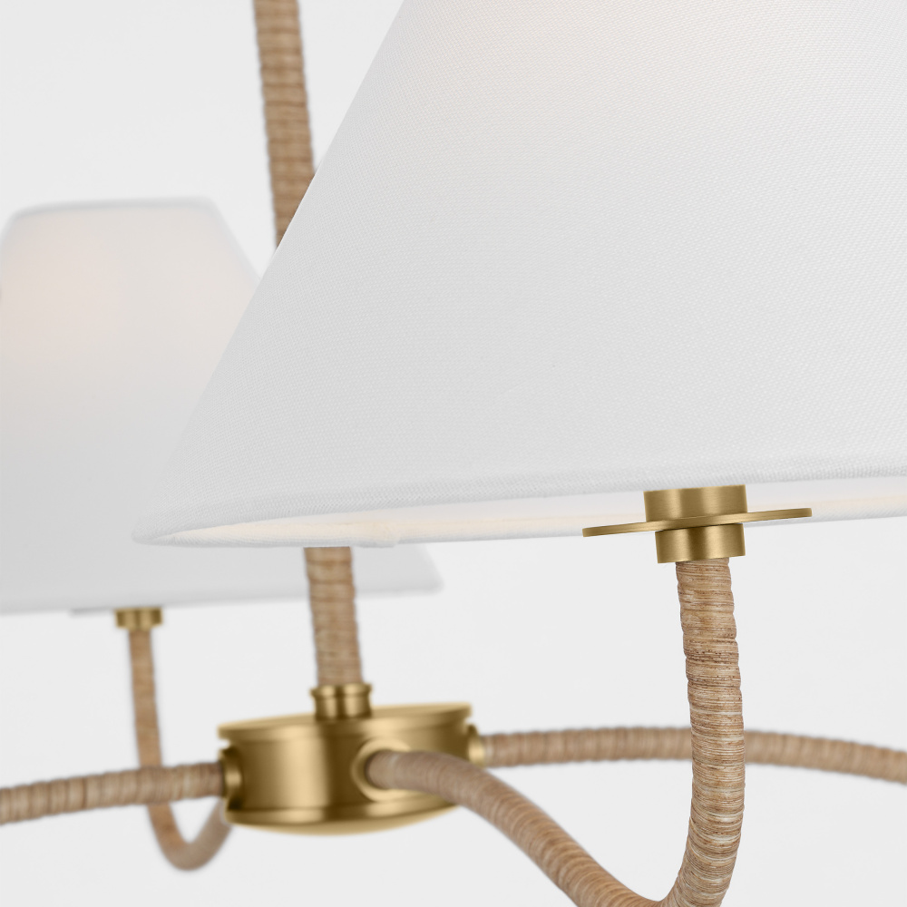 The curving arm of a vintage Royere sconce inspired the graceful form of each Laguna design. Along with most of Chapman & Myers's natural woven designs, the natural woven wrapped frame of each piece in this series is elevated by the metal details adorning them. Laguna is a unique blend of eclectic nautical and rustic vintage styles.