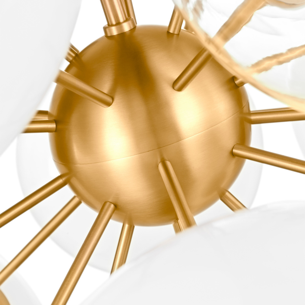 The Aria chandelier by kate spade new york is a mid-century modern chandelier with a cluster of glass globes and brass accents. The playfully modern design will take you back to the Space Age while illuminating your space in style, making it a perfect match for any contemporary Living room, dining room, kitchen, or bedroom.