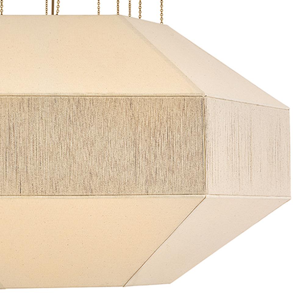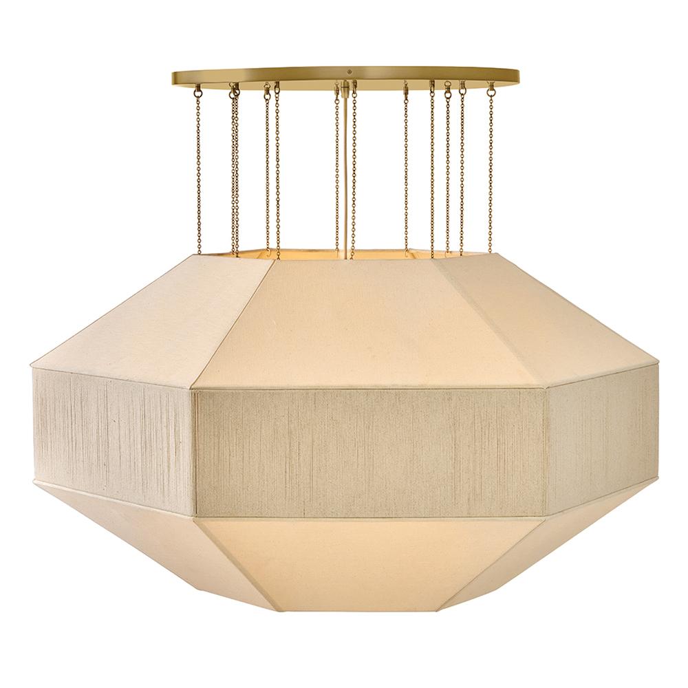 Elegant yet edgy, Lyla’s geometric Oatmeal Linen shade with a textured, wrapped middle band is suspended from refined Lacquered Brass micro-chains – inspired by delicate jewelry designs. A Lacquered Brass canopy and dimmable lamping add subtle warmth and a sophisticated atmosphere to the surrounding space.