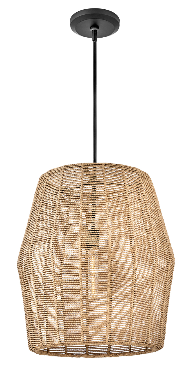 Luca's coastal vibe is permeated with a slightly exotic edge. The bold pendant showcases a robust, woven drum shade, and a full finished cluster for plenty of functional light offered in a variety of finish options. Luca is part of the Lisa McDennon Collection.