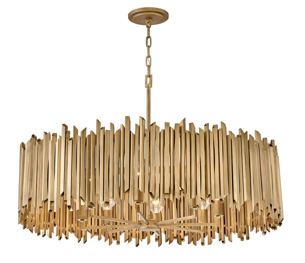 Gleaming with both natural and glam influences, Roca makes a dramatic statement. Part of the Lisa McDennon Collection, this dazzling design stands apart with its striking sculptural silhouette. Roca radiates an edgy organic elegance with handmade, hand-painted square rods in Burnished Gold.
