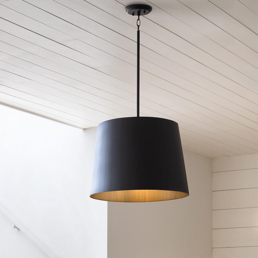 Understated, yet bold, Alder blends form and modern function for outdoor dining spaces or over the counter with its open top and bottom for optimal light leak. The metal drum shade is constructed in aluminum, making this fixture suitable for indoor and outdoor spaces. Alder is available in a Black or Burnished Bronze finish.