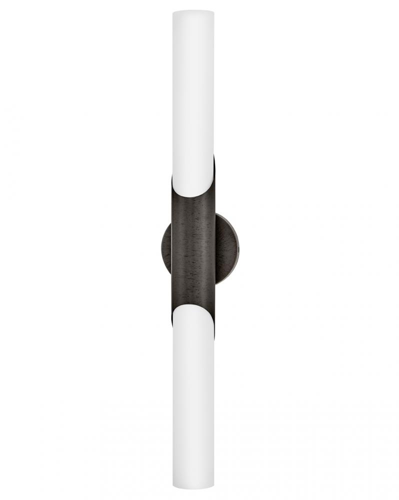 Grace is simply elegant and perfectly named. Featuring a beautifully modern silhouette enhanced by a bias-cut central cuff, this feminine fixture has a timeless aesthetic that complements any décor style. Smooth etched opal glass is paired with a Textured Black Oxide or Textured Heritage Brass finish, providing contrast and subtle detail.