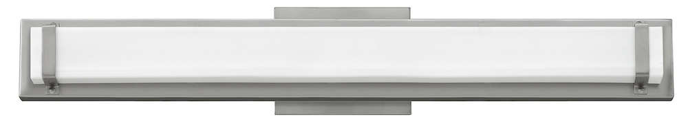 Tremont offers a bold silhouette ideal for any transitional décor. The formed linear panel of etched white acrylic creates a soft and seamless appearance while evenly diffusing the eco-efficient LED light source. Offered in Brushed Nickel or Polished Nickel, the shade is secured with sleek metal bands, riveted at each end and framed by a full-length back plate. A raceway back plate allows mounting directly to the wall without the included junction box cover plate, for a more streamlined look.