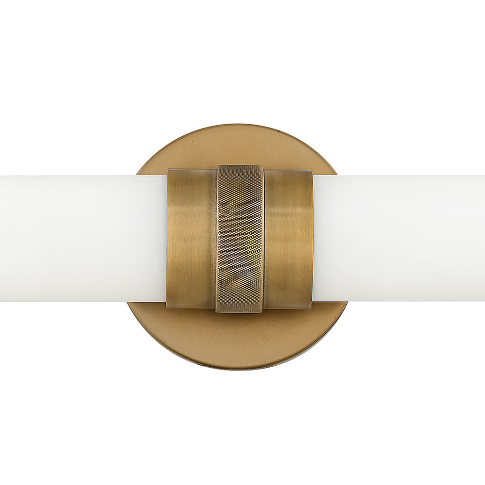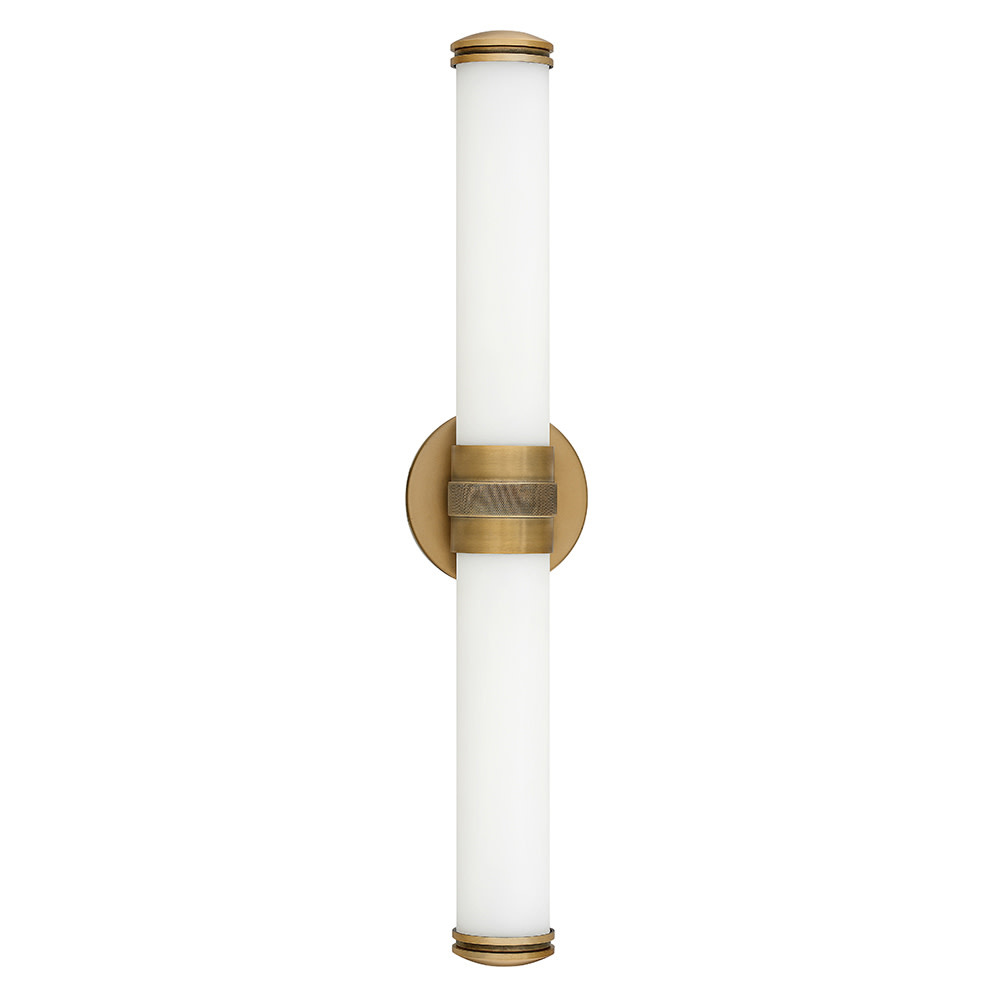 Remi's slim profile and sophisticated details seamlessly merge with LED technology to master both form and function. The etched white glass cylinder is finely detailed with precise, stepped end caps, and the cast knurled bracelet in luxe finish options is artfully crafted with vintage appeal. This chic, transitional design ensures Remi's ability to complement a wide variety of bath or interior spaces.