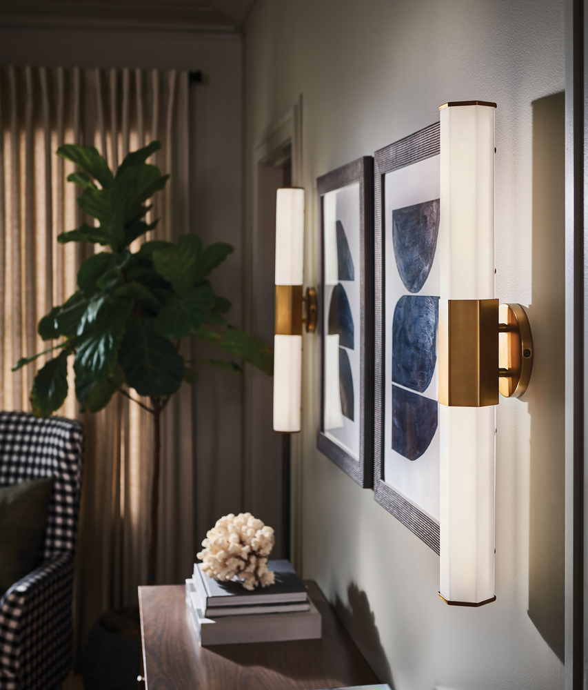 View the many sides of Facet. Interesting angles combine with bold metal features to create an edgy and contemporary profile that is unpretentious yet unforgettable. Hexagonaletched opal glass is showcased by Heritage Brass or Black Oxide finishes.