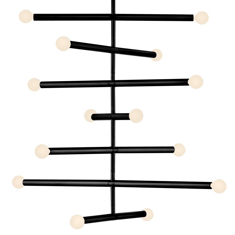 Millie tells a linear love story with elongated cylindrical rods extending outwards, creating a sleek statement that commands attention. This design establishes immediate style credibility thanks to its iconic midcentury modern origin, ensuring visual intrigue in either Black or Lacquered Brass finishes. to complement Millie's chic style, we recommend G16.5 bulbs.