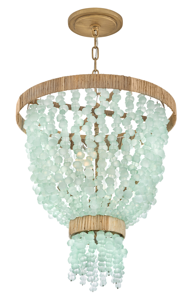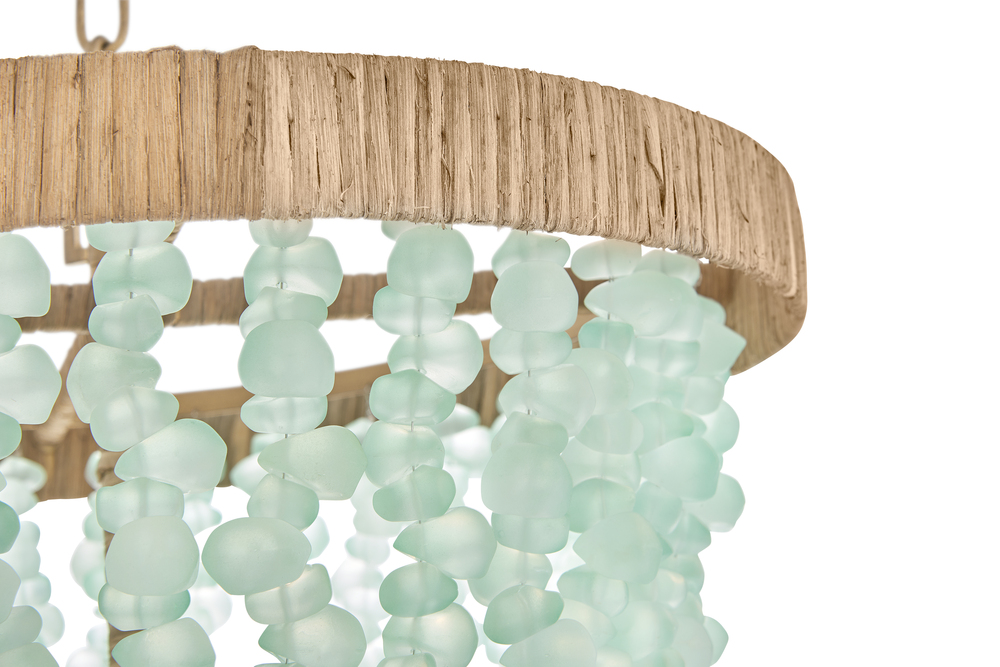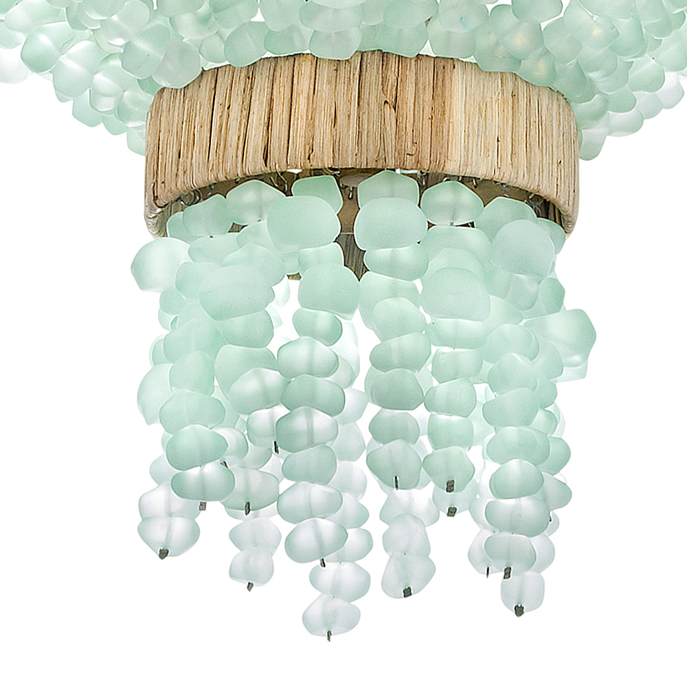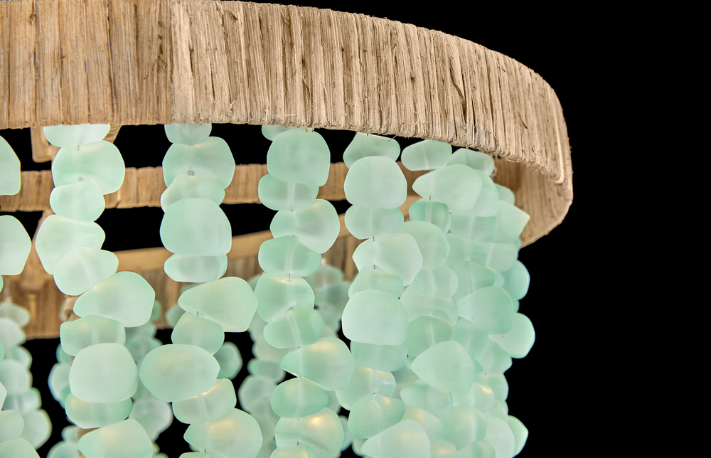 Dune's bohemian chic design showcases strands of soft sea glass combined with a Burnished Gold finish. The designs blend a sophisticated silhouette with organic elements inspired by sun and surf. Dune infuses any space with timeless, mesmerizing elegance.