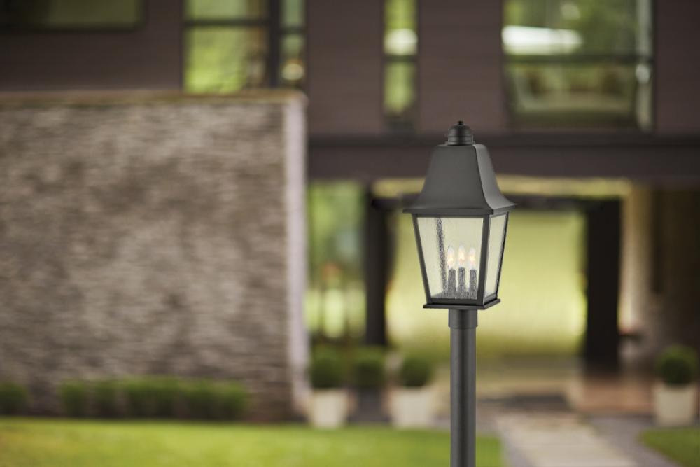 Effortlessly elegant, Kingston embraces traditional features and visual intrigue to illuminate exterior spaces, while its sturdy aluminum construction ensures durability to withstand outdoor elements. The classic lantern design highlights an oversized soft sweeping roof and bottom arm, clean lines, and a Black finish. Kingston's removable hood allows for easy bulb replacement.
