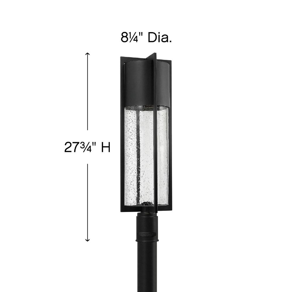 Shelter’s minimalist style in aluminum creates a chic, dramatic statement as the light from above grazes through its clear seedy glass. Shelter comes standard Dark Sky compliant.