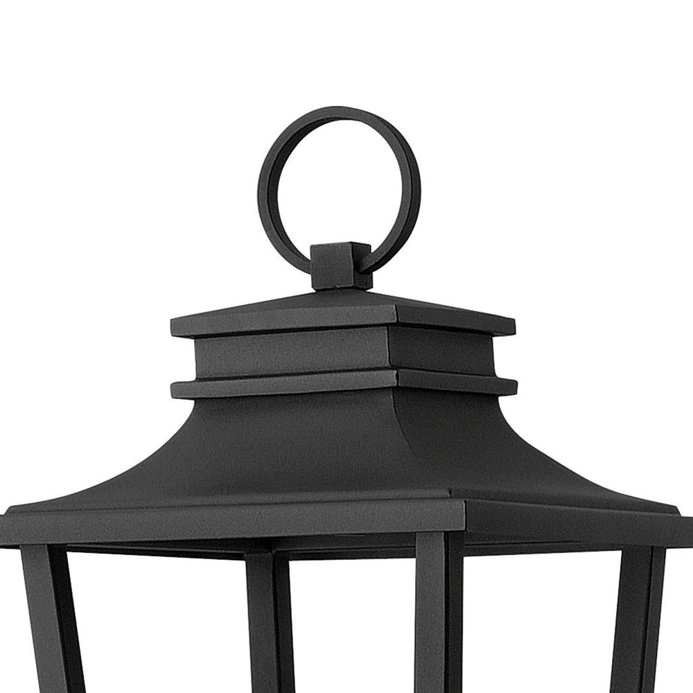 Sullivan’s clean transitional style features a minimalist cast aluminum body that frames the contemporary, candle-like etched opal glass. A large cast ring finial is mounted on top for a traditional finishing touch to this sleek lantern design.