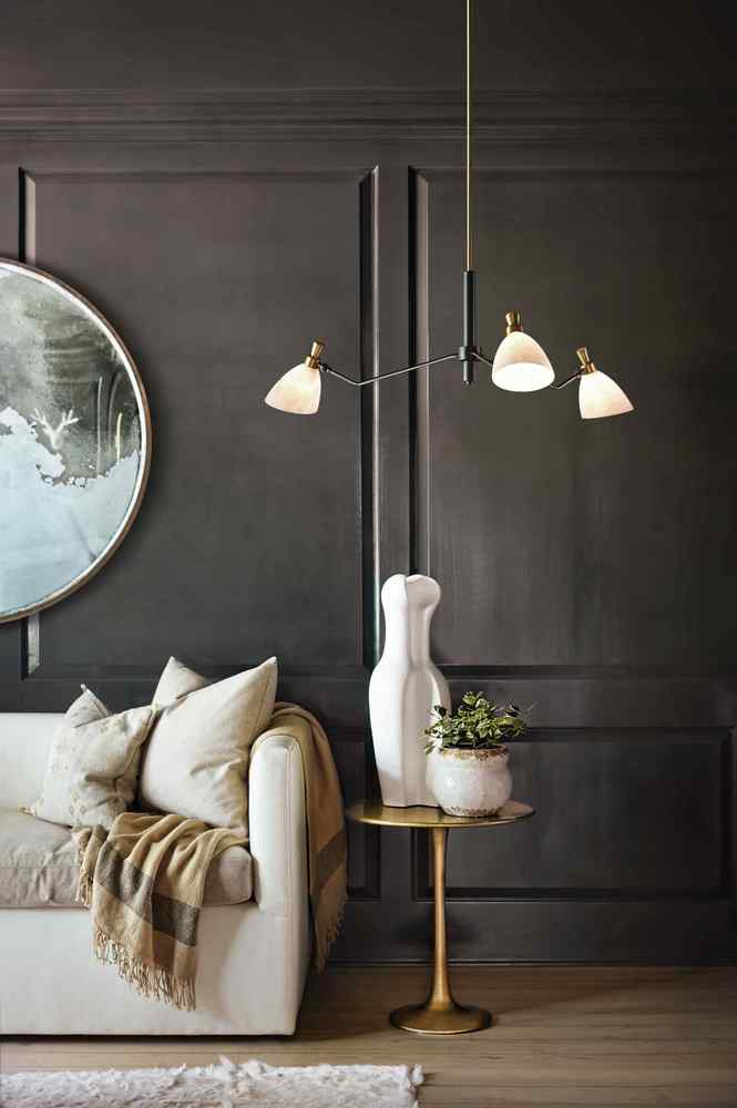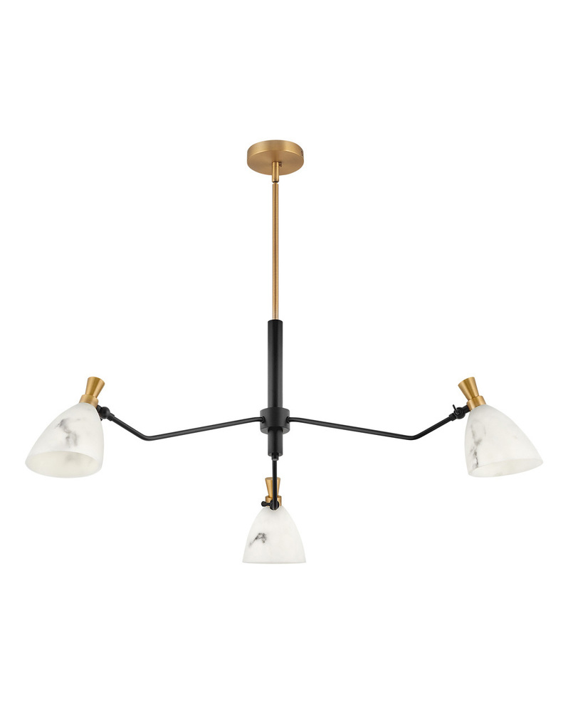Influenced by a mid-century modern aesthetic, Sinclair’s striking profile is accentuated by stunning details. A classic finish combination of Heritage Brass and Black is paired with luminous, luxurious faux alabaster shades. Sinclair’s sophisticated design offers articulating shades to create a custom look. All designs for Sinclair must be bulbed with LED bulbs only (not included).
