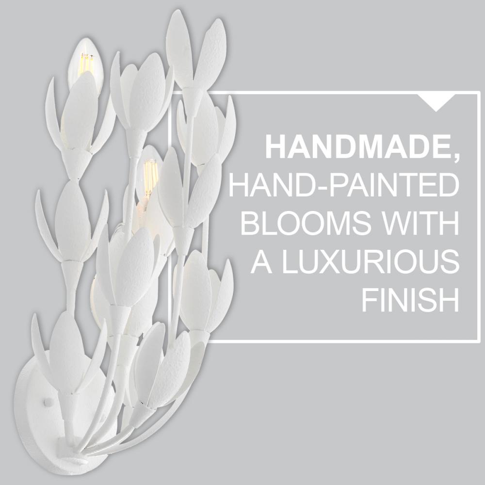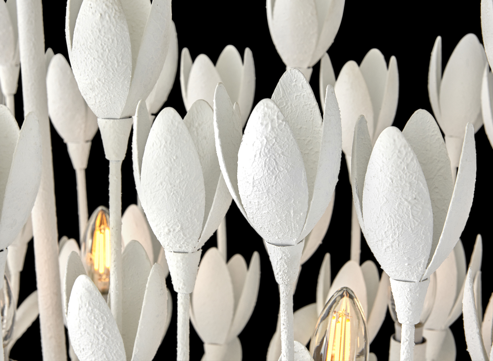 Flora is a work of art inspired by the delicate nature and beauty of florals. Blurring the line between lighting and sculpture, Flora’s handmade, hand-painted blooms mesmerizingly unfold while the bulbs beautifully nestle inside.