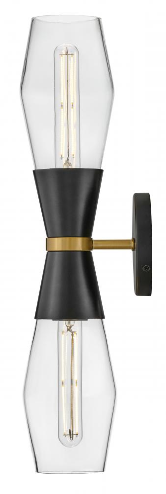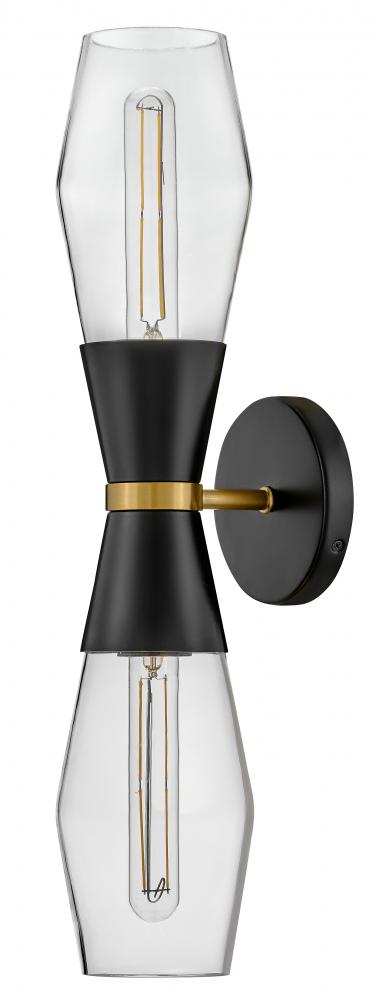 A geometric gem, Livie cleverly mixes sleek lines with an angular shape for a contemporary cool look that makes itself at home anywhere. Clear glass unites with spun metal elements in striking Black or luxe Lacquered Brass finish options to boldly underscore Livie’s modern edge.
