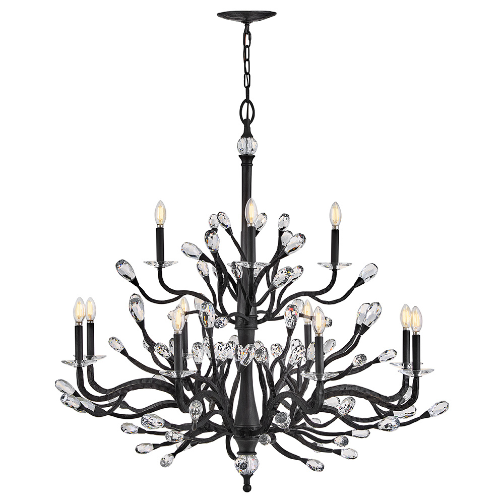 Eve’s glamorous, organically inspired silhouette features ornate, craftsman-forged stems, embellished with whimsical faceted clear crystal buds on luxuriously finished vines.