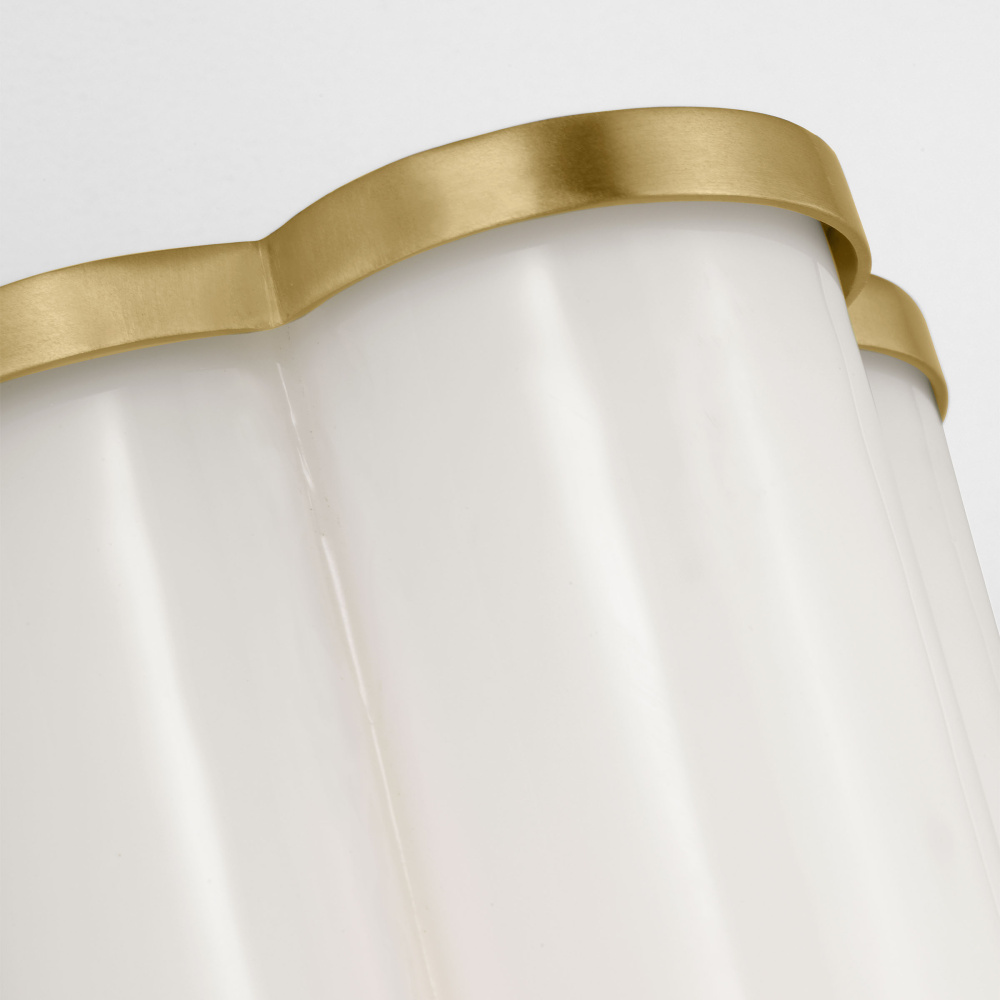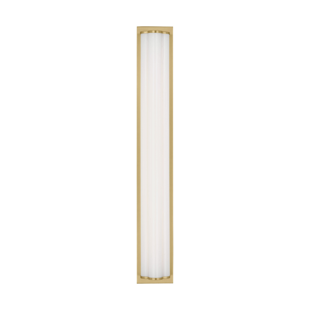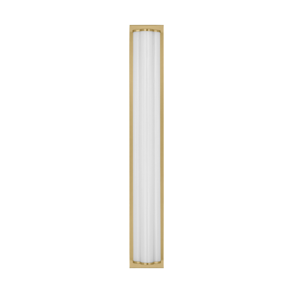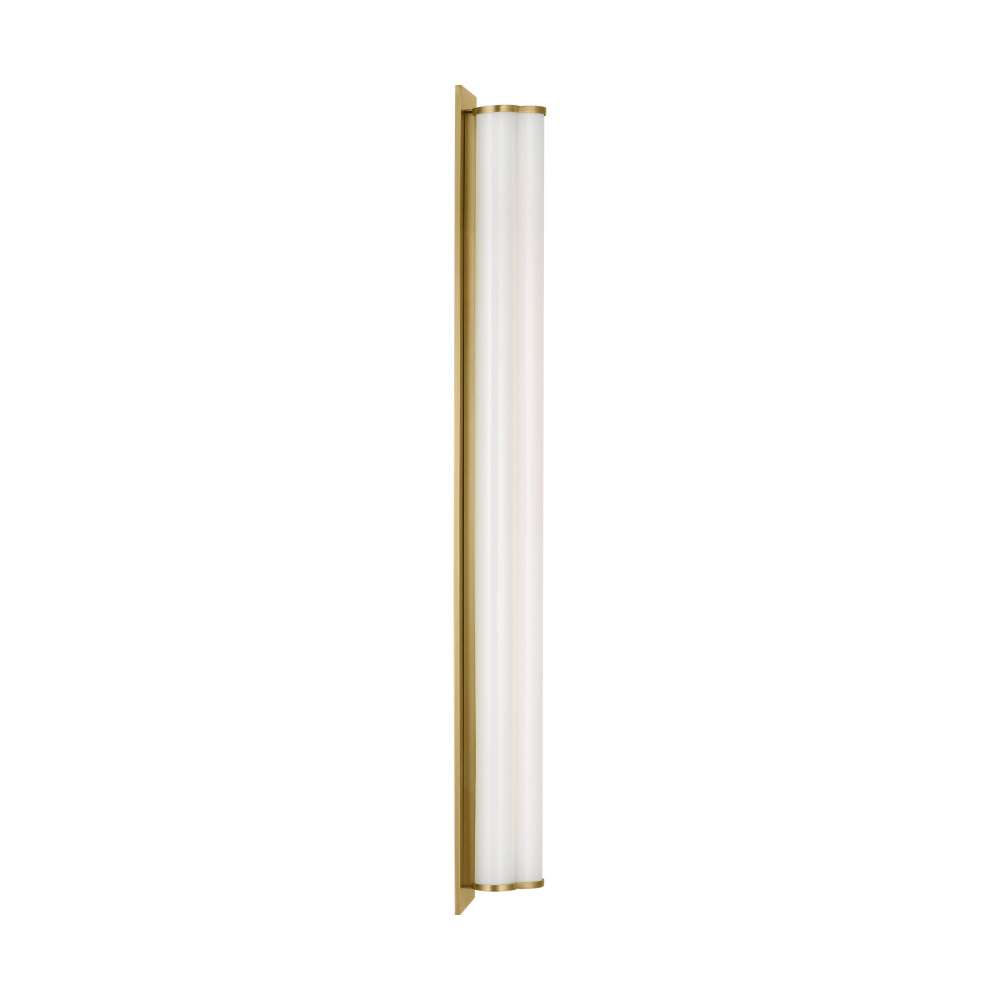 The Freya is a unique design by kate spade new york with three milk glass cylinders resting on a Burnished Brass back plate that can be placed vertically or horizontally. These wall lights are also technologically savvy, fitted with an integrated LED. With their sleek and chic design, the Freya vanity fixtures effortlessly complement any decor style, adding a dash of glamour to your dressing room, bathroom, or bedroom.