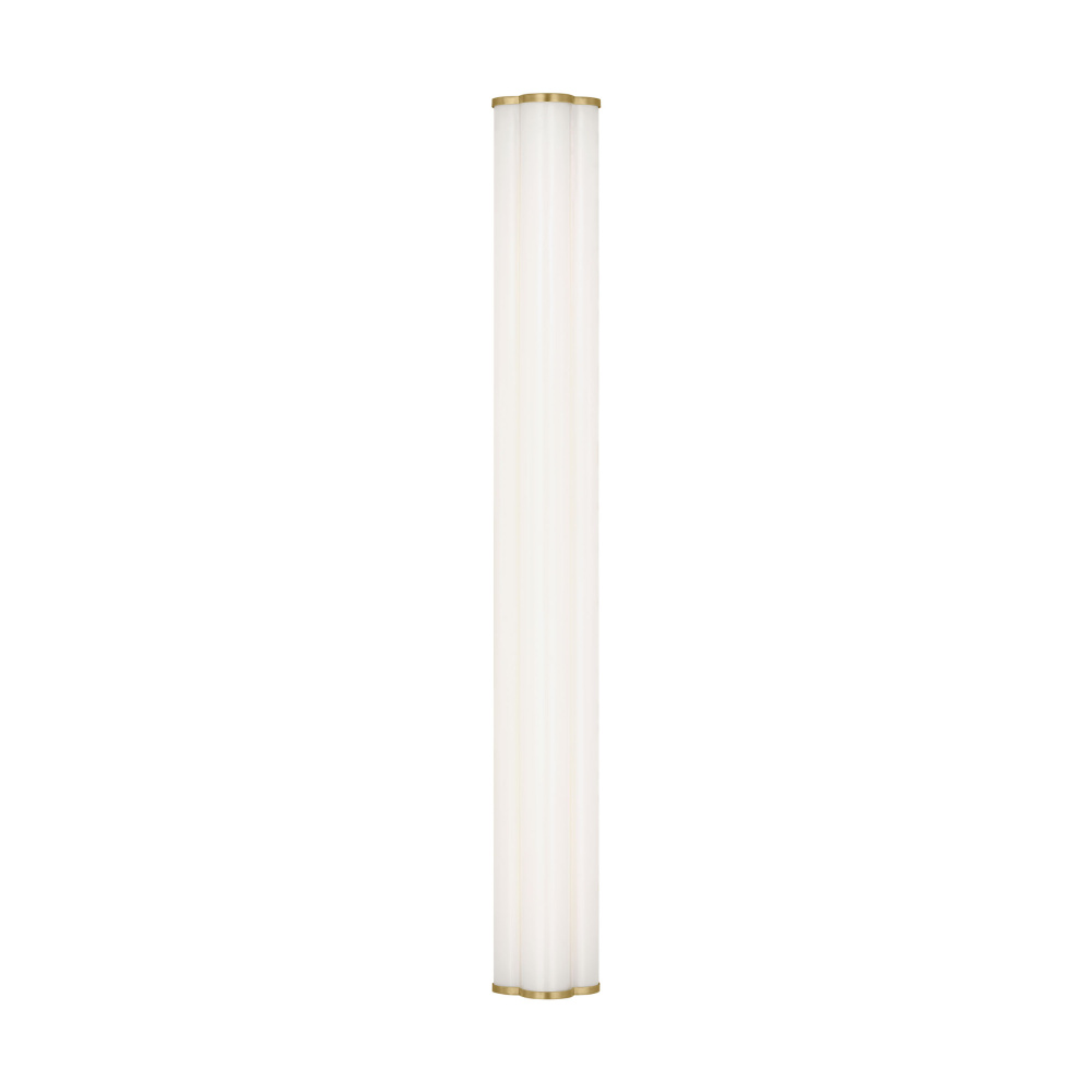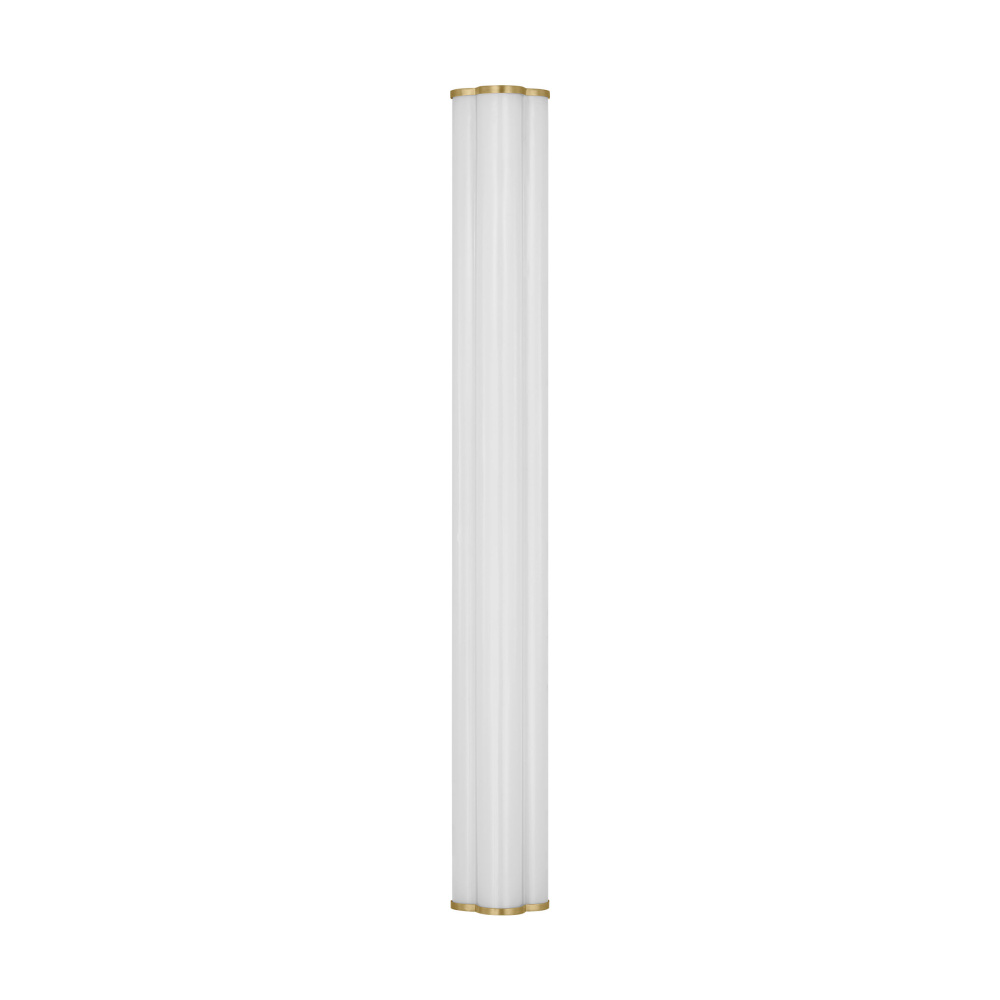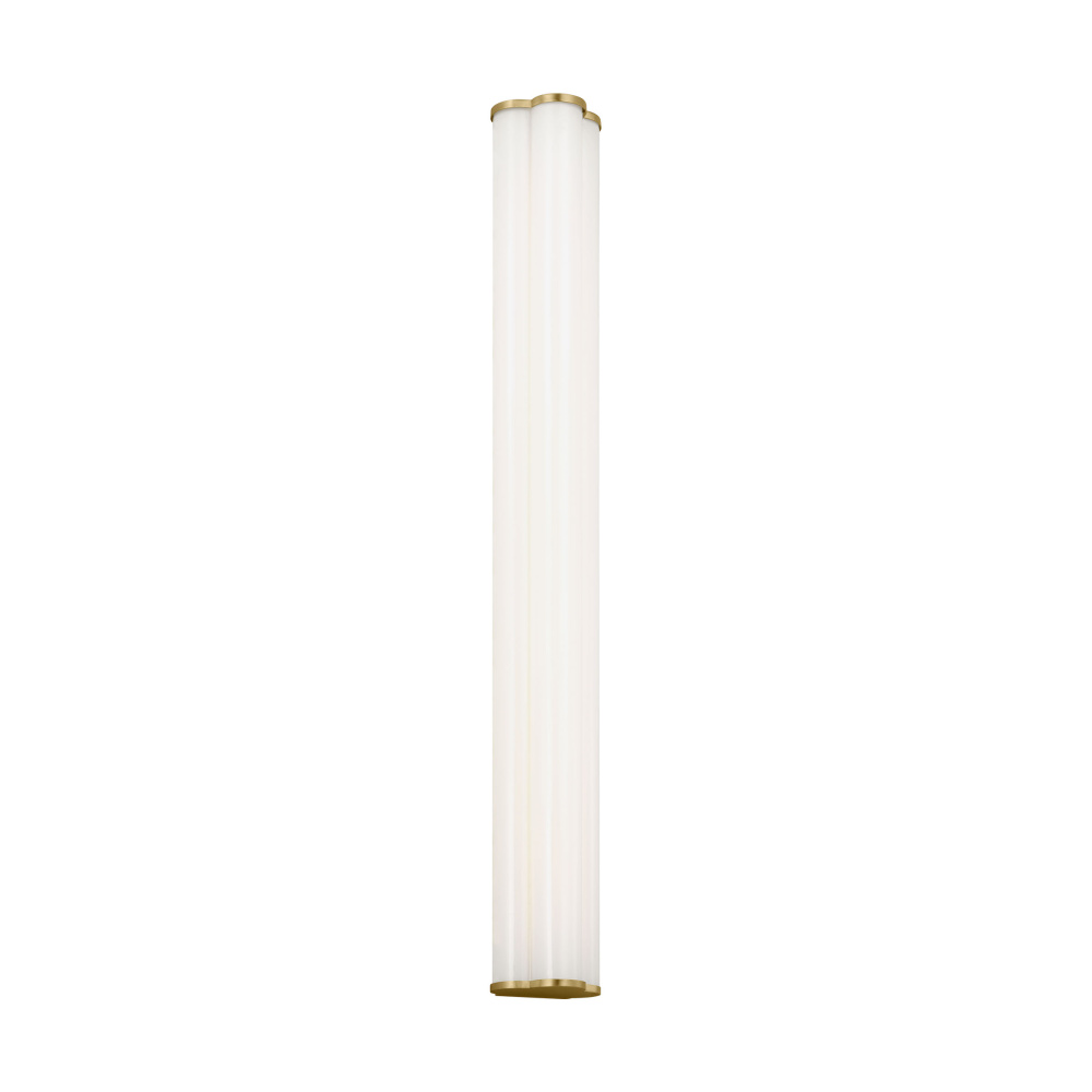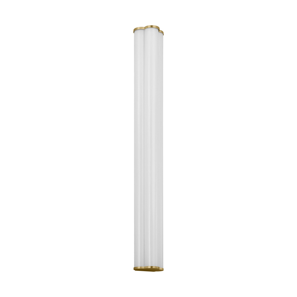 The Freya is a unique design by kate spade new york with three milk glass cylinders resting on a Burnished Brass back plate that can be placed vertically or horizontally. These wall lights are also technologically savvy, fitted with an integrated LED. With their sleek and chic design, the Freya vanity fixtures effortlessly complement any decor style, adding a dash of glamour to your dressing room, bathroom, or bedroom.