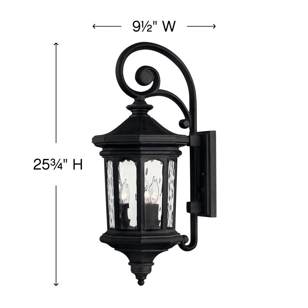 Raley’s regal appearance features a cast aluminum construction, flourishing details, and glass panels for a dignified style statement.