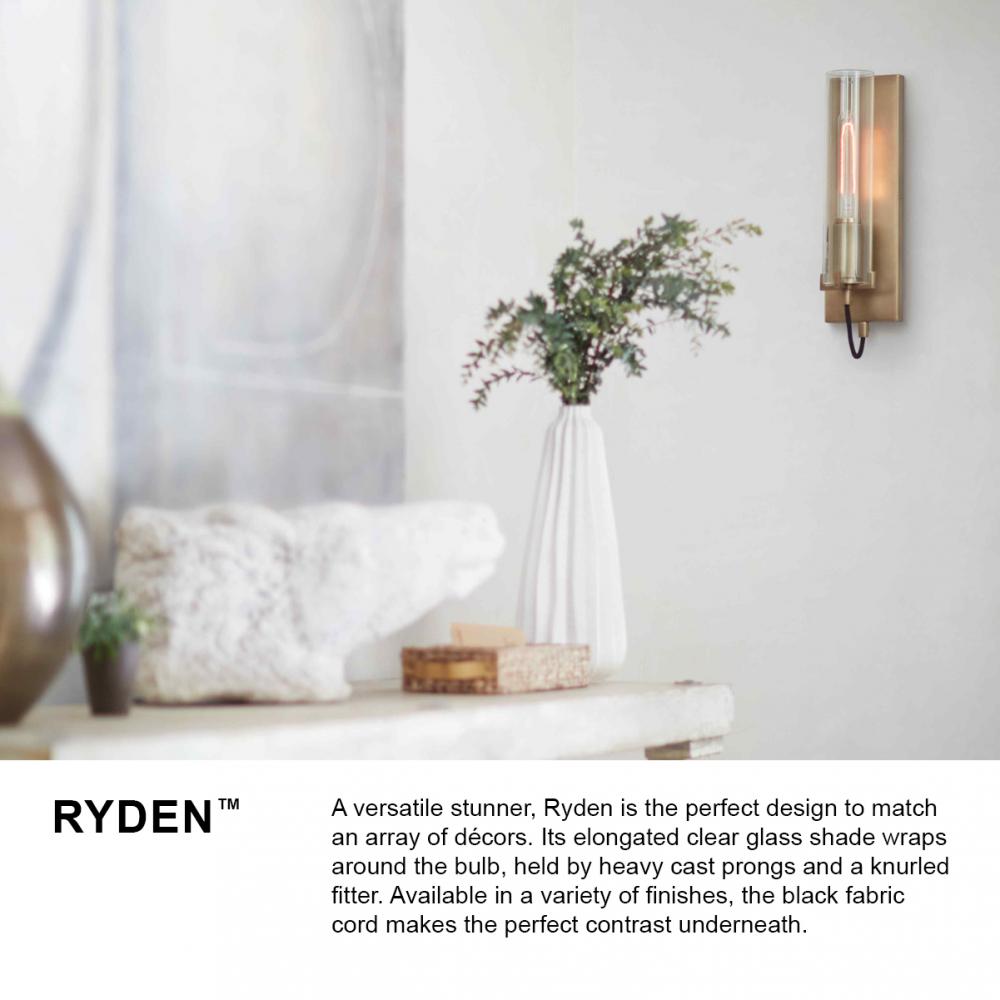 A versatile stunner, Ryden‘s chic, modern-industrial silhouette is practical yet stylish, featuring elongated glass shades held by heavy cast prongs. Classic finishes are complemented by black, fabric-wrapped cord and subtle detailing.