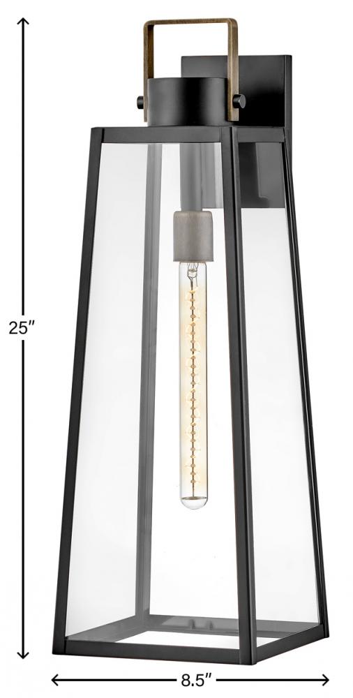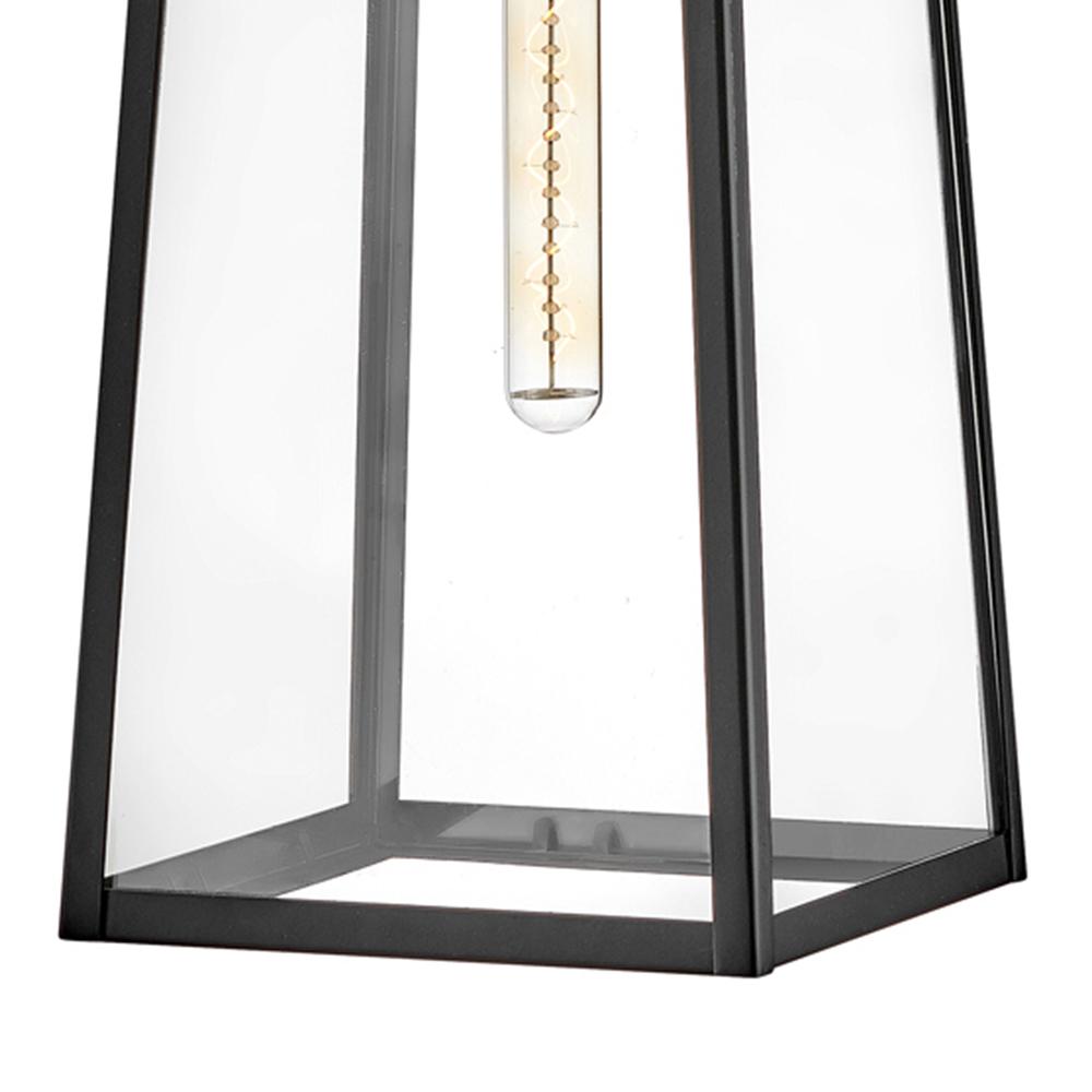Hype up your alfresco area with the Hugh outdoor lantern and its sleek transitional style. The trapezoidal design features bold over scaled clear glass panes framed by carefully curated two-tone metal finish options to inject a modern edge. Choose from classic Antique Brushed Aluminum with a matte Black accent or a rich Black with a warm Burnished Bronze accent. Pro tip: we recommend a tubular vintage filament bulb to make Hugh pop on porches, patios or amp up any exterior space.
