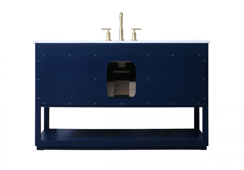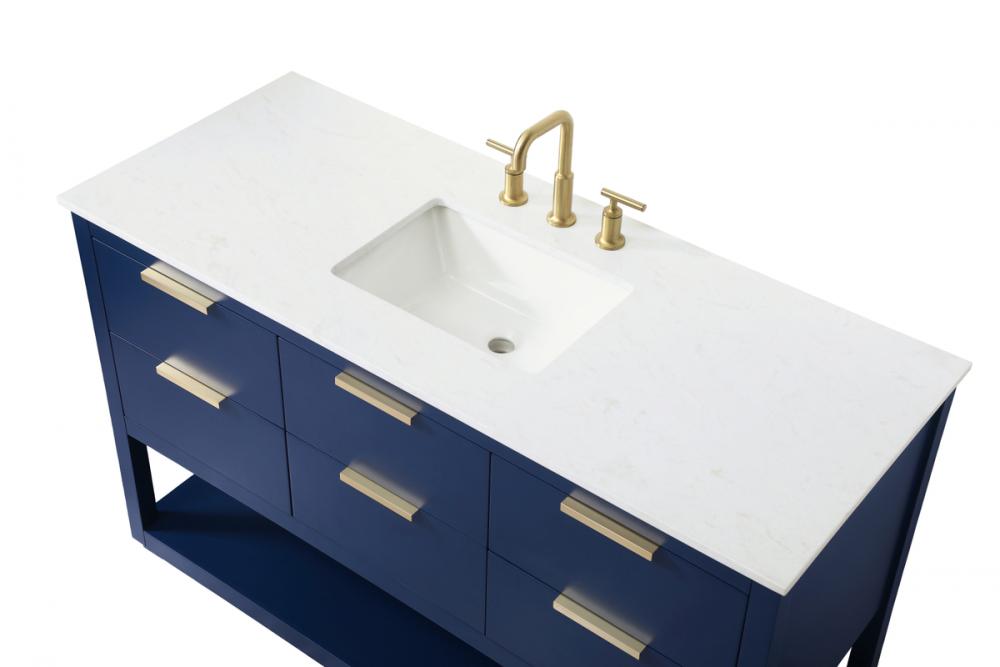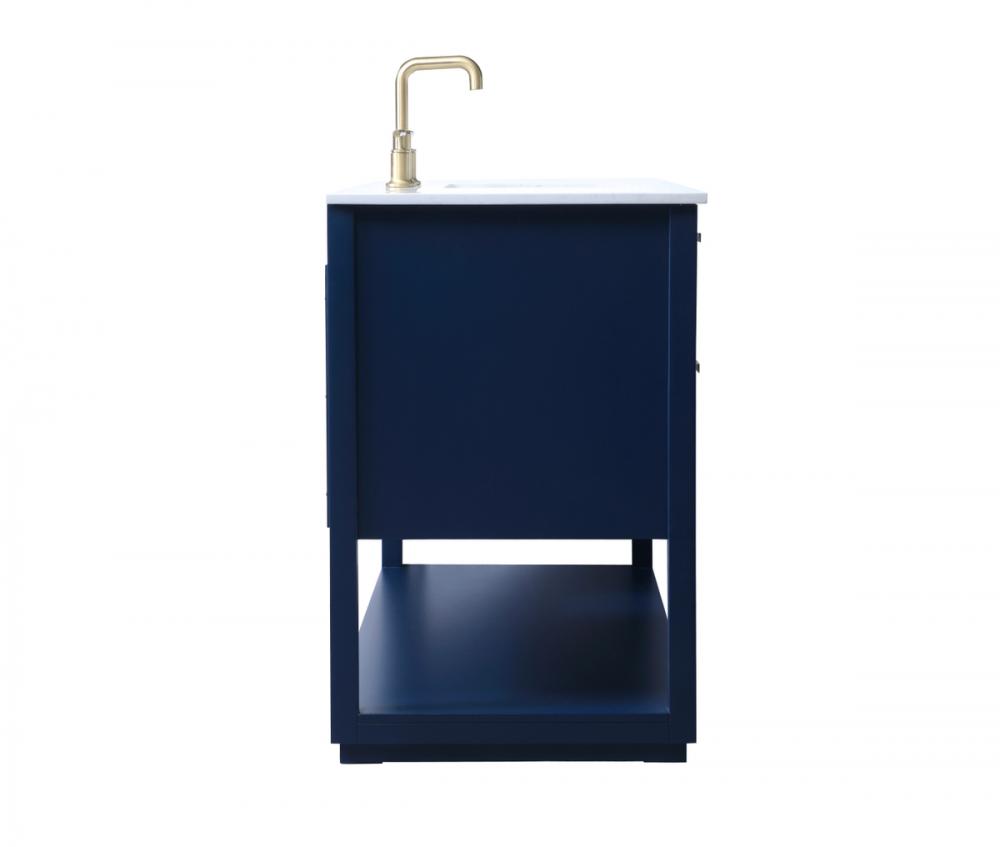 Elevate your bathroom effortlessly with our stylish vanity. Featuring an engineered marble top and chic straight edge cut, it brings a touch of modern elegance. The soft-close drawers, adorned with sleek pulls, offers both convenient storage and a contemporary aesthetic. Completing the ensemble, an undermount porcelain sink adds timeless charm. The vanity's open shelf at the bottom provides extra storage and a space to showcase decor. As a freestanding unit, this hassle-free solution requires no assembly. Customize your space effortlessly with this sophisticated option for instant bathroom elegance.