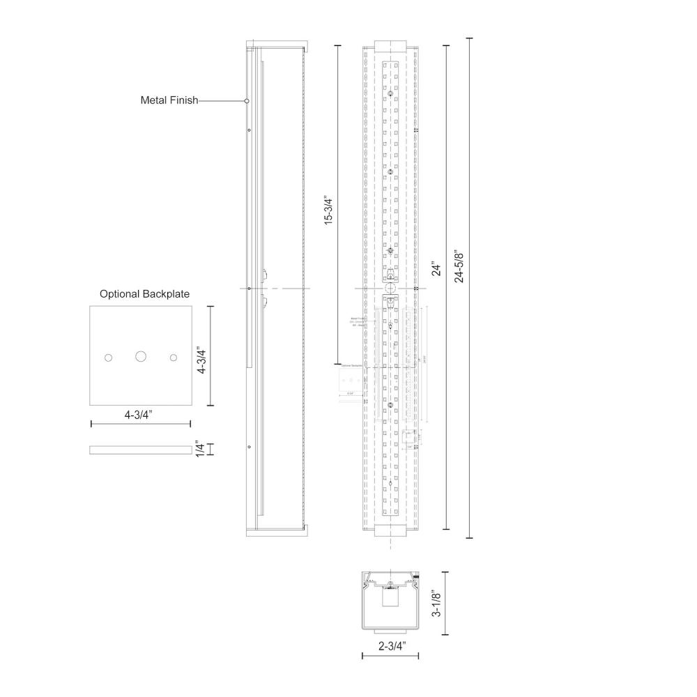 An extruded rectangular diffuser surrounds the LED source of the geometric vanity fixture. Capped by two thick offset squares the design is characterized by minimal details and clever features. During installation the lamp assembly may slide on the mounting track to allow for ideal positioning. Adding to the versatile function are the multiple fixture lengths and mounting orientations. Optional installation without backplate for smaller junction boxes.