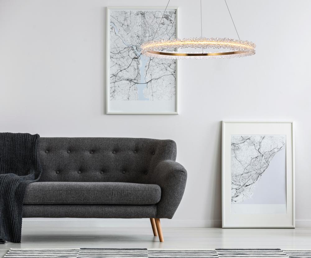 When you want dramatic, modern lighting for your home – but aren’t sure about the shape of the fixture – look into the Laurel collection. Featuring a round metal ring with radiating crystal balls attached at the ends all of which blend to create impressive visual effects.