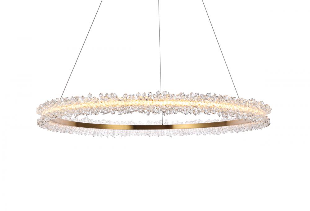 Clear faceted crystal beads borders the gold ring
