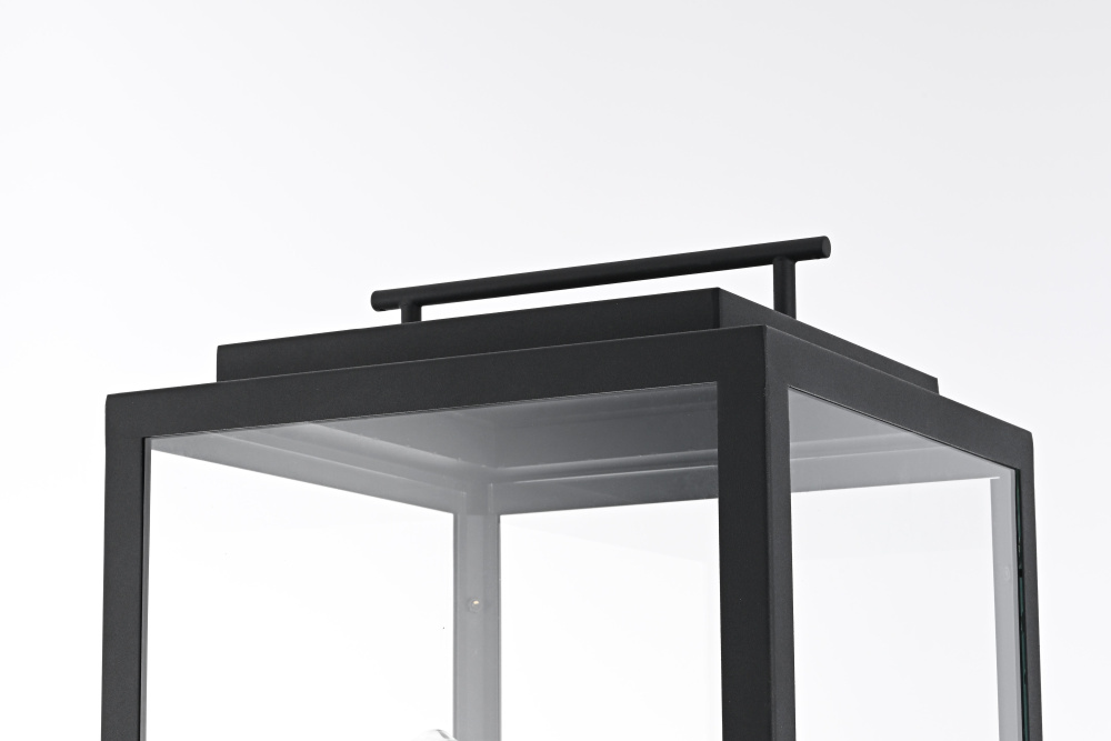 Transparent glass panels allow light to radiate evenly, providing bright, unobstructed illumination that enhances walkways and landscaped areas.
