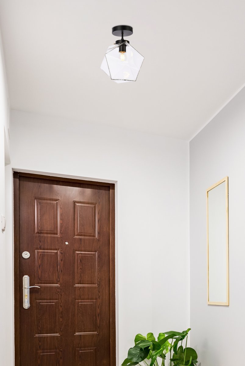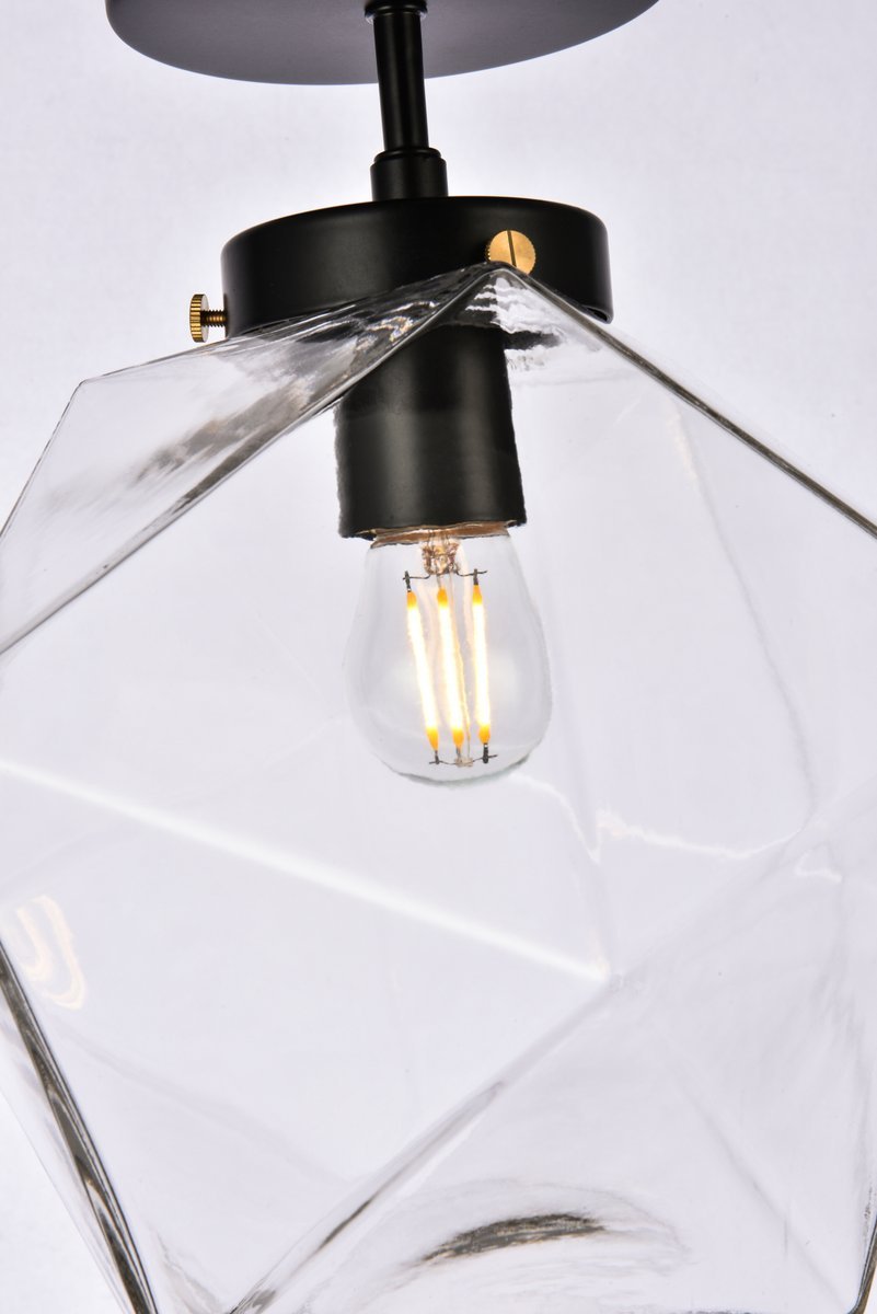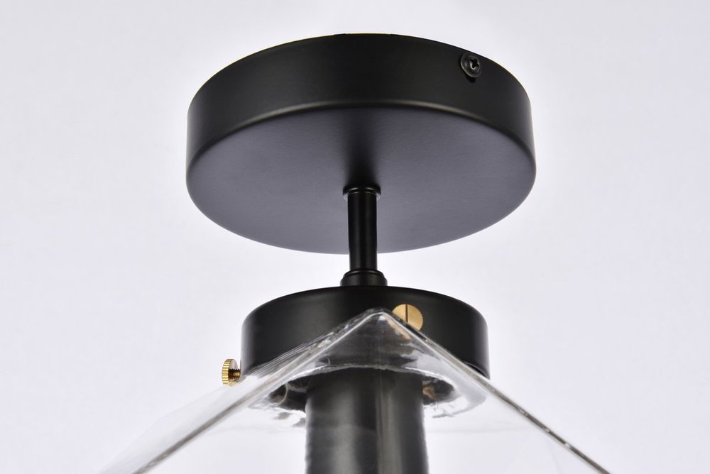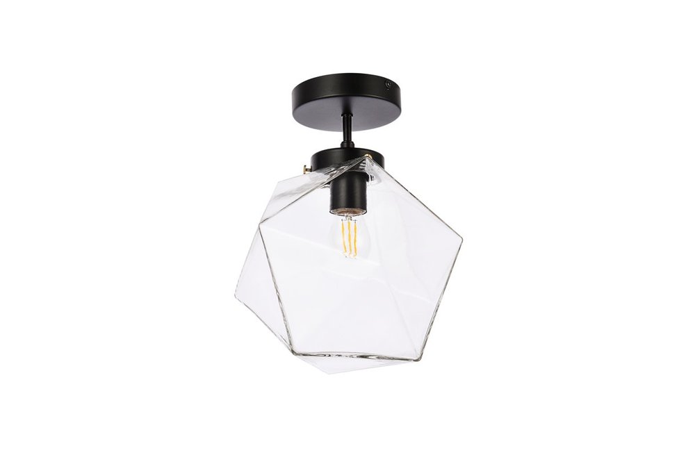 The Lawrence Collection ceiling lamp is the perfect choice if you are looking to add visual interest with functional illumination into the room. The beauty lies in its unique shape and colors. It is available in black, brass, or chrome finish with either a clear or white glass shade. This product is dimmable and requires one E26 lamp. Light bulbs not included.