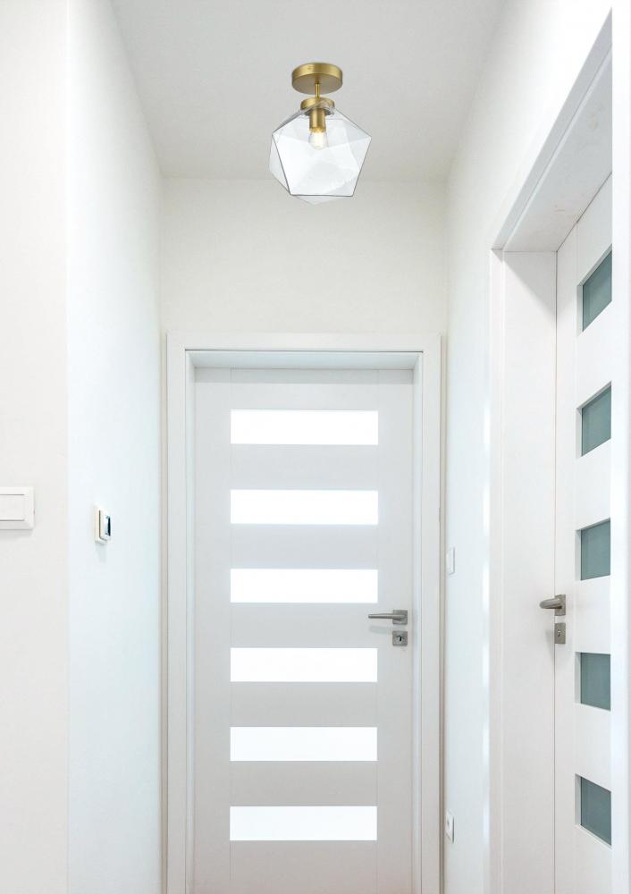 The Lawrence Collection flush mount is the perfect choice if you are looking to add visual interest with functional illumination into the room. The beauty lies in its unique shape and colors. It is available in satin gold, black, brass, or chrome finish with a clear glass shade. This product is dimmable and requires one E26 lamp. Light bulbs not included.