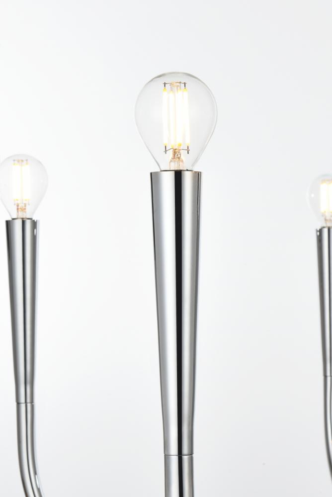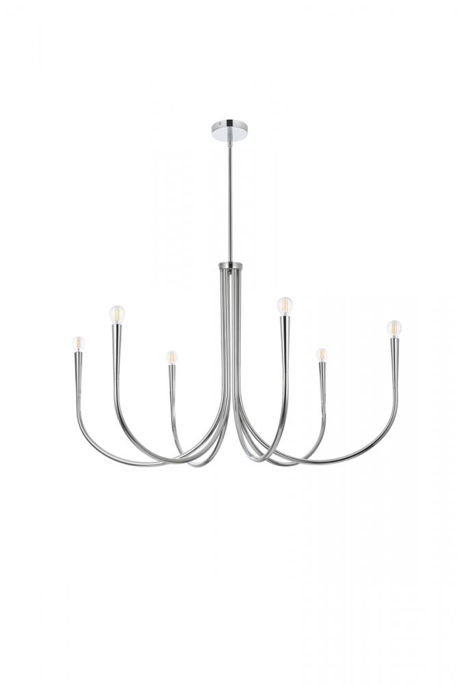 Equipped with six arms, this chandelier provides generous illumination to brighten up any space. Each conical end ensures a focused and balanced distribution of light, creating a warm and inviting atmosphere. The smooth and curved design of the tubular arms creates a gentle, inviting glow that bathes your room in a soft, diffused light. Enjoy a welcoming ambiance that beckons you to unwind and relax. The arms of this chandelier ingeniously stack vertically, forming a stunning display of tubes that adds depth and dimension to the overall design. This unique arrangement sets it apart from traditional chandeliers, making it a true conversation starter. Sloped ceiling adaptable with a durable swivel could be mounted on vaulted or angled ceilings.