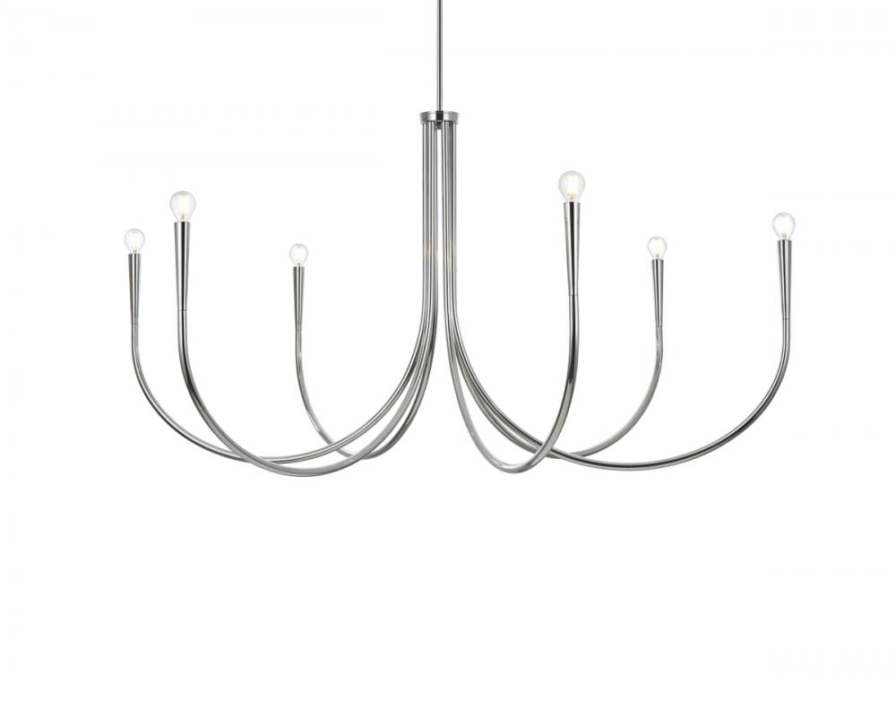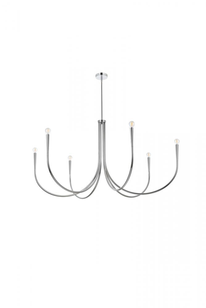 Equipped with six arms, this chandelier provides generous illumination to brighten up any space. Each conical end ensures a focused and balanced distribution of light, creating a warm and inviting atmosphere. The smooth and curved design of the tubular arms creates a gentle, inviting glow that bathes your room in a soft, diffused light. Enjoy a welcoming ambiance that beckons you to unwind and relax. The arms of this chandelier ingeniously stack vertically, forming a stunning display of tubes that adds depth and dimension to the overall design. This unique arrangement sets it apart from traditional chandeliers, making it a true conversation starter. Sloped ceiling adaptable with a durable swivel could be mounted on vaulted or angled ceilings.