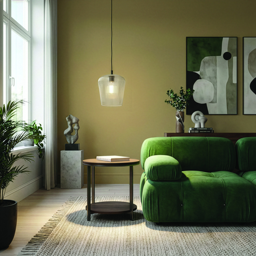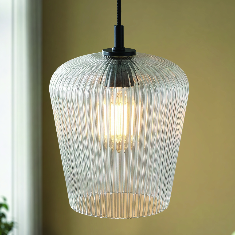 Soft, Textured Light: The ribbed clear glass casts a warm, diffused glow, creating comfortable, everyday lighting that feels both functional and refined.