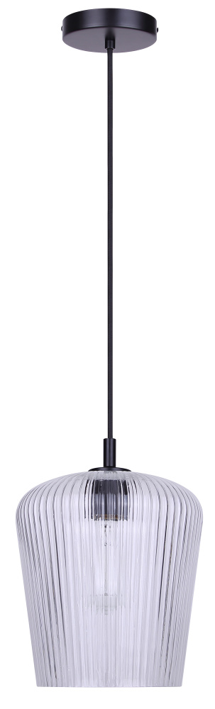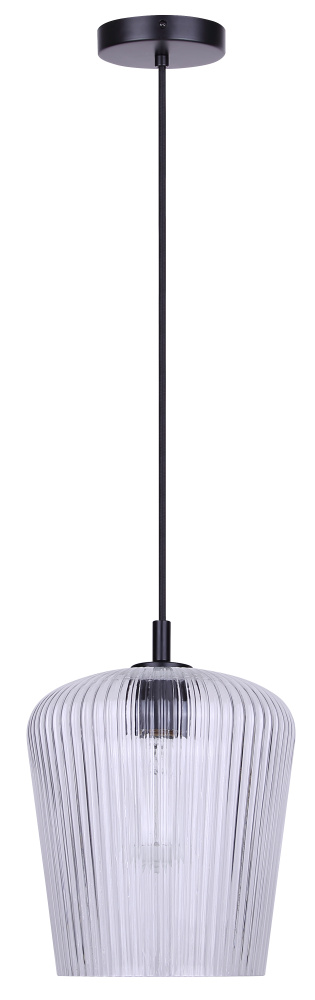 Leandro 1-Light Corded Pendant Matte Black Finish with Clear Ribbed Glass