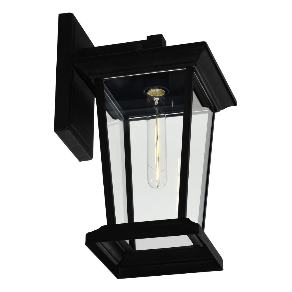 Sleek Modern Design Compact 8-inch black wall lantern adds contemporary style to any exterior.