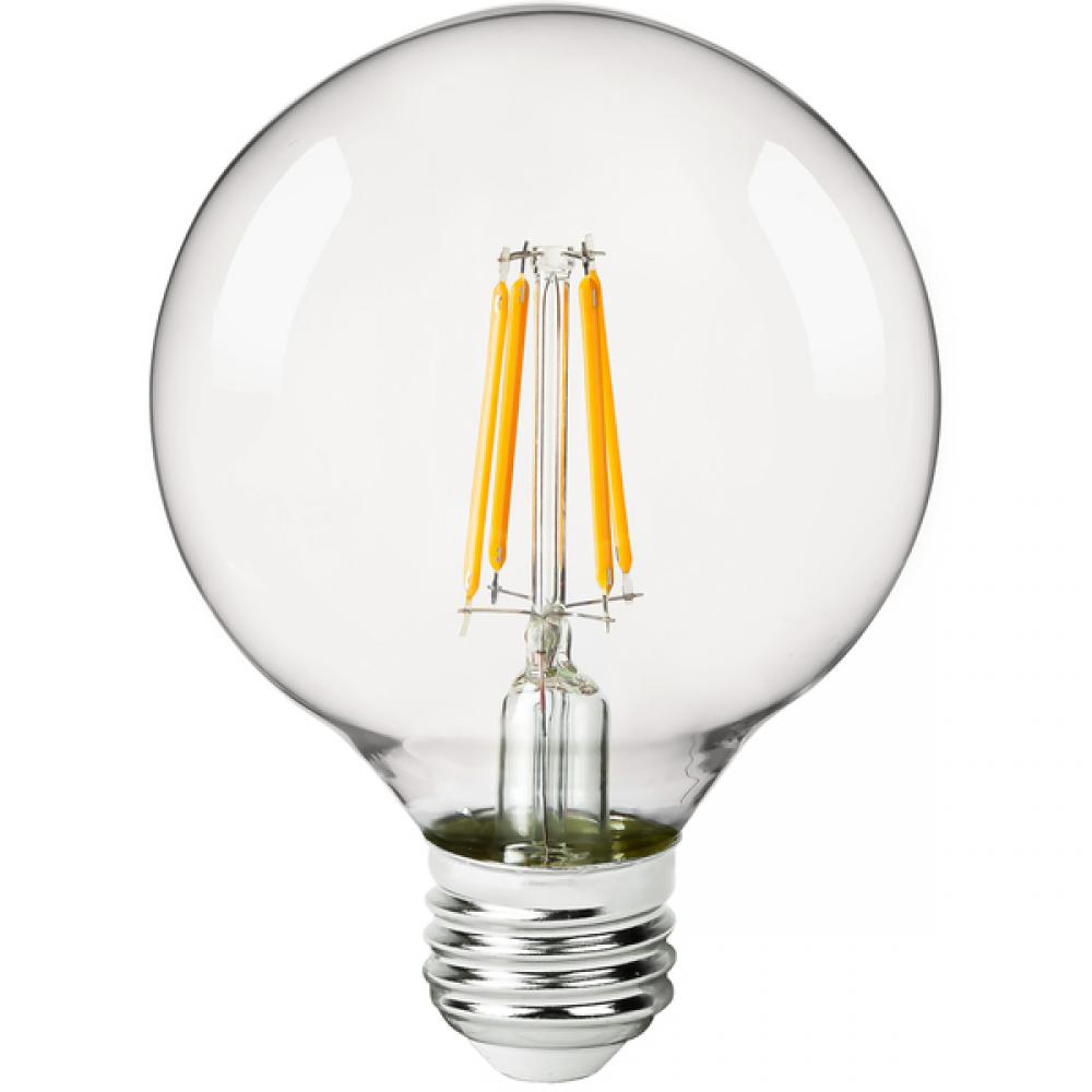 The multipurpose G25LED103 LED filament light bulbs emit a very warm light (3000K) ideal for moderate, low-light surroundings. Because they are dimmable, you can create just the mood you want. The energy-efficient E26 bulbs generate 420 lumens and can replace standard 40-watt bulbs. Average life is 15, 000 hours. They come in a six-pack with a two-year warranty.