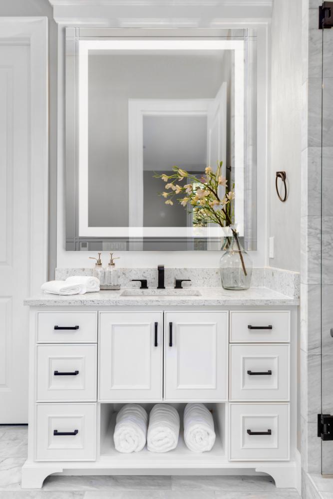 Elevate your bathroom experience with the Canarm 36x42-Inch LED Bathroom Mirror, meticulously crafted to blend functionality with aesthetic appeal. This frameless, rectangular mirror is more than just a reflective surface; it's a fusion of contemporary design and innovative technology. Equipped with a touch-sensitive switch and a built-in defogger, this mirror ensures a clear, fog-free reflection, perfect for your daily grooming and skincare rituals. The LED lighting, adjustable between 3000-6000k, provides optimal brightness for precision tasks, while the sleek, modern design adds a touch of elegance to any bathroom décor. Whether you're getting ready for the day or unwinding at night, this LED mirror offers a blend of style, convenience, and quality, making it an ideal addition to your space.