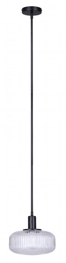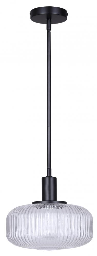 Illuminate your home with LEDGER, a sleek and modern 1-light rod pendant. Finished in stylish Matte Black color, LEDGER features a clear ribbed glass shade for added texture and visual interest. This pendant accommodates a 60W Type A bulb and is adjustable in height from 13 to 61 inches, making it suitable for various ceiling heights and room configurations.