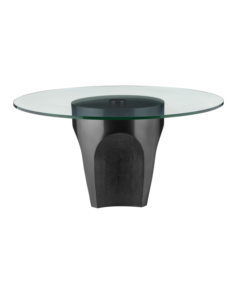 The Lemy Black Cocktail Table is a mix master of shapes and textures. Made of stainless steel in a black finish, the cocktail table has textural indentions that look as if they have been carved out of the metal. The contemporary piece is topped with a tempered glass top.