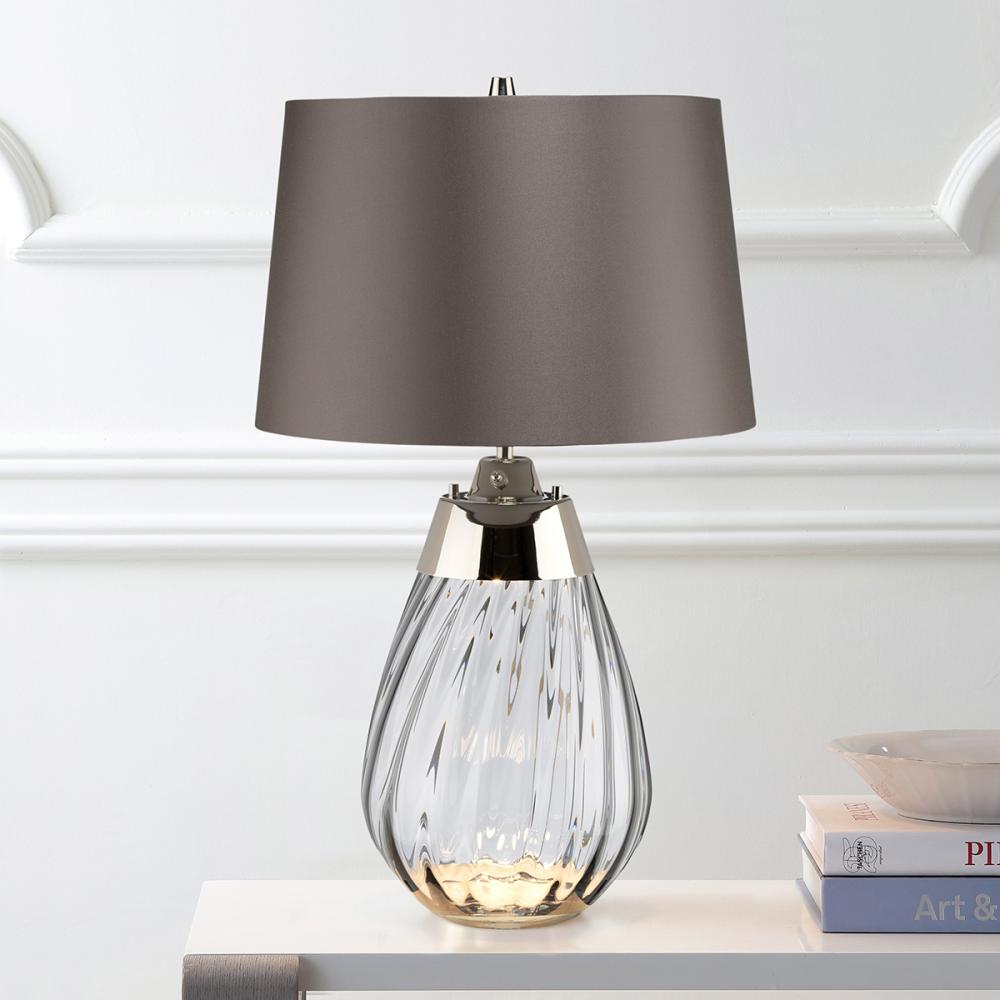 Lena Large Table Lamp in Smoke with Brown Satin Shade