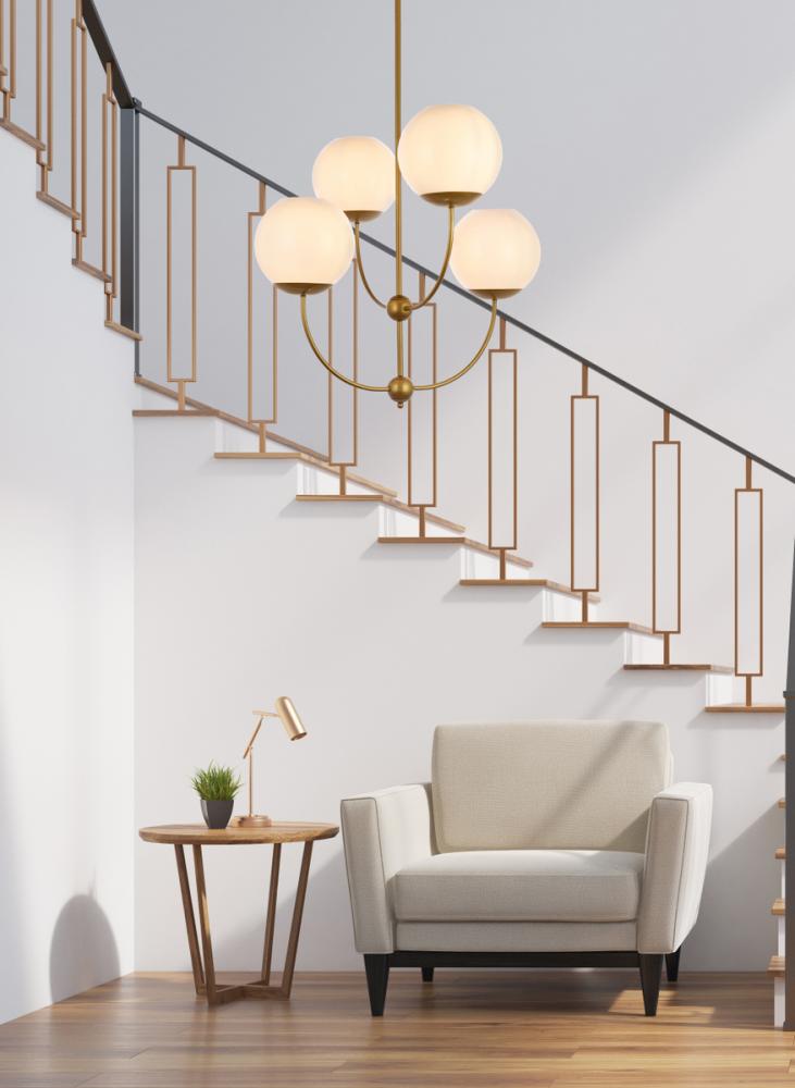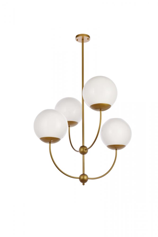 Add major mid-century modern style without taking up any valuable floor space with this 4-light chandelier. It's made from metal and features a slender shaped body that supports four rounded arms running parallel to the downrod. At each end of the arms there is a glass globe shade that diffuses the light from a 40W bulb (not included). This light arrives with an adjustable down rod.