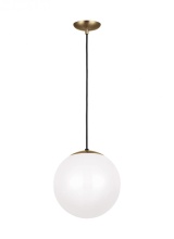 The Leo - Hanging Globe one light indoor pendant in satin brass enhances the beauty of your home with ample light and style to match today's trends. While hanging globes are one of lighting's hottest trends, Sea Gull's timeless Leo Collection has been around for 50 years! Constantly evolving with the times, these classic pendants are now offered with NEW Clear Seeded glass and in Satin Aluminum finish. Adjustable cloth cords allow for unlimited variations of hanging heights. All glass softly diffuse the light, each fixture comes with 54†of cuttable cord to customize the installation exactly to your needs. Easily convert every piece in the collection to LED by purchasing LED replacement lamps sold separately. All fixtures are qualified and California Title 24 compliant and damp rated for use in sheltered, damp environments like bathrooms, covered patios or porches.