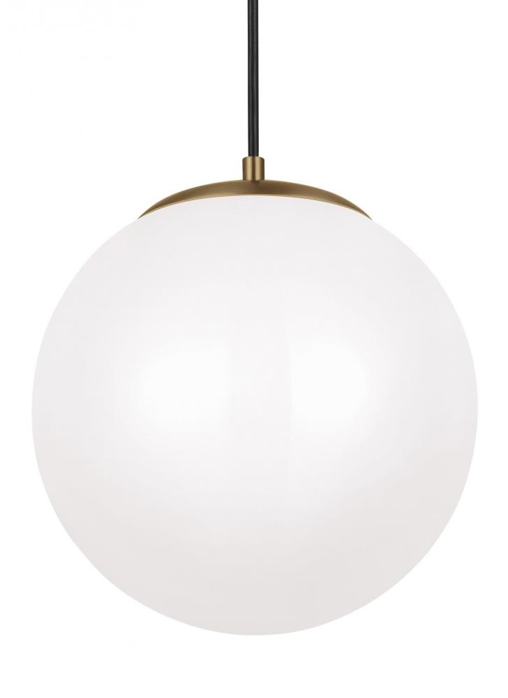 The Leo - Hanging Globe one light indoor pendant in satin brass is the perfect way to achieve your desired fashion or functional needs in your home. While hanging globes are one of lighting's hottest trends, Sea Gull's timeless Leo Collection has been around for 50 years! Constantly evolving with the times, these classic pendants are now offered with NEW Clear Seeded glass and in Satin Aluminum finish. Adjustable cloth cords allow for unlimited variations of hanging heights. All glass softly diffuse the light, each fixture comes with 54†of cuttable cord to customize the installation exactly to your needs. Easily convert every piece in the collection to LED by purchasing LED replacement lamps sold separately. All fixtures are qualified and California Title 24 compliant and damp rated for use in sheltered, damp environments like bathrooms, covered patios or porches.
