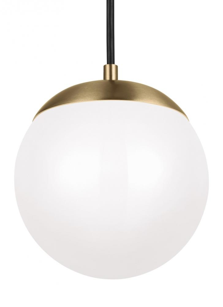 The Leo - Hanging Globe one light indoor pendant in satin brass is the perfect way to achieve your desired fashion or functional needs in your home. While hanging globes are one of lighting's hottest trends, Sea Gull's timeless Leo Collection has been around for 50 years! Constantly evolving with the times, these classic pendants are now offered with NEW Clear Seeded glass and in Satin Aluminum finish. Adjustable cloth cords allow for unlimited variations of hanging heights. All glass softly diffuse the light, each fixture comes with 54†of cuttable cord to customize the installation exactly to your needs. Easily convert every piece in the collection to LED by purchasing LED replacement lamps sold separately. All fixtures are qualified and California Title 24 compliant and damp rated for use in sheltered, damp environments like bathrooms, covered patios or porches.