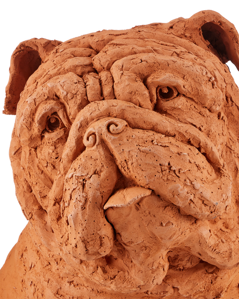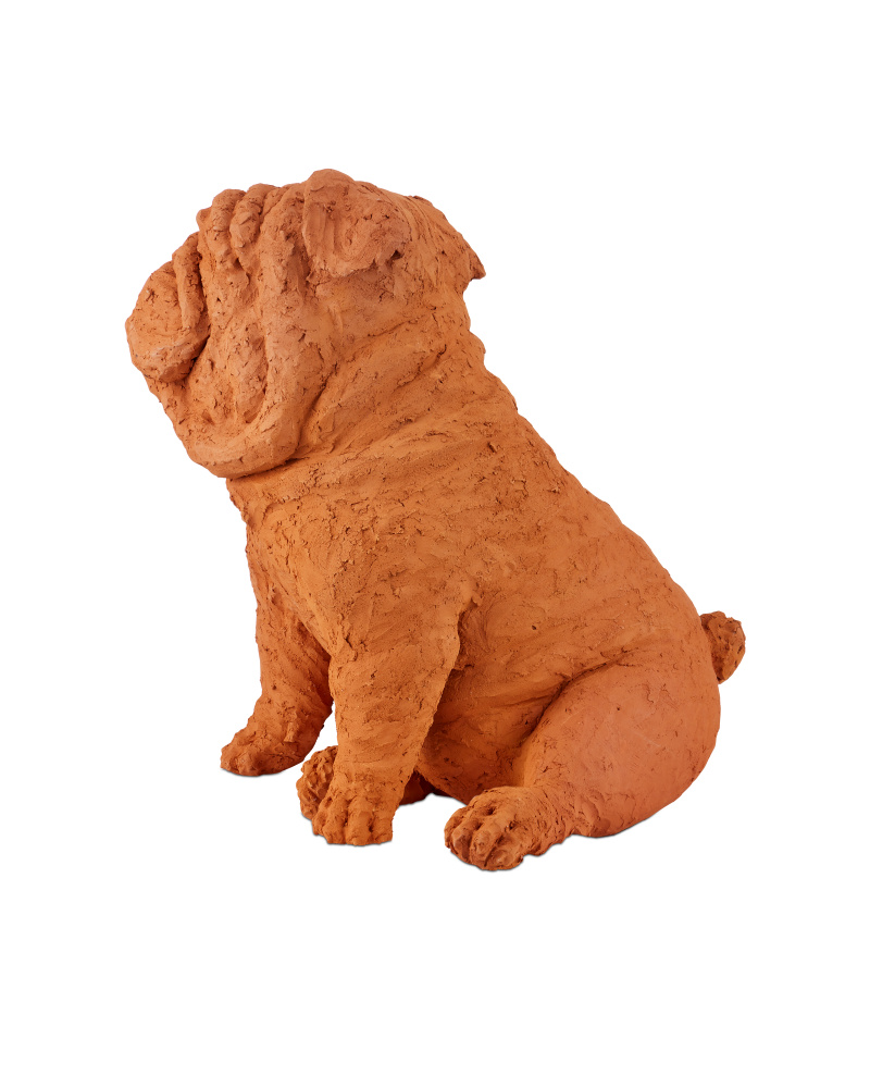 Whimsical in terracotta, Leonard Churchill the Bulldog is a sculpture by the emerging Thai artist Nhut Nhathawut. with an expression that is so lifelike, it feels he may bark at any moment, there are a number of artisanal aspects to the canine sculpture. This includes the obvious strokes of the artist's tools that play along the surface of the dog's body. Brownlee Currey had some fun describing this breed, saying, “Broad, strong and steadfast, Leo would rather be at home with family than appear as the mascot of your sporting event. Lazing about the residence, he does rather wonder what all those working dog types might be up to. Probably no good!”