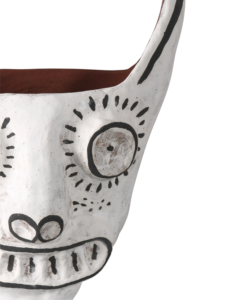 Artist Xiang Yang, a brilliant ceramist, took a walk on the wild side when he created Leopold the Jaguar. Made of porcelain in an antique white finish with black whimsical details painted by the artist, the haunting vessel will create a stir not unlike Picasso's work did during his ceramics period as he experimented in the South of France.