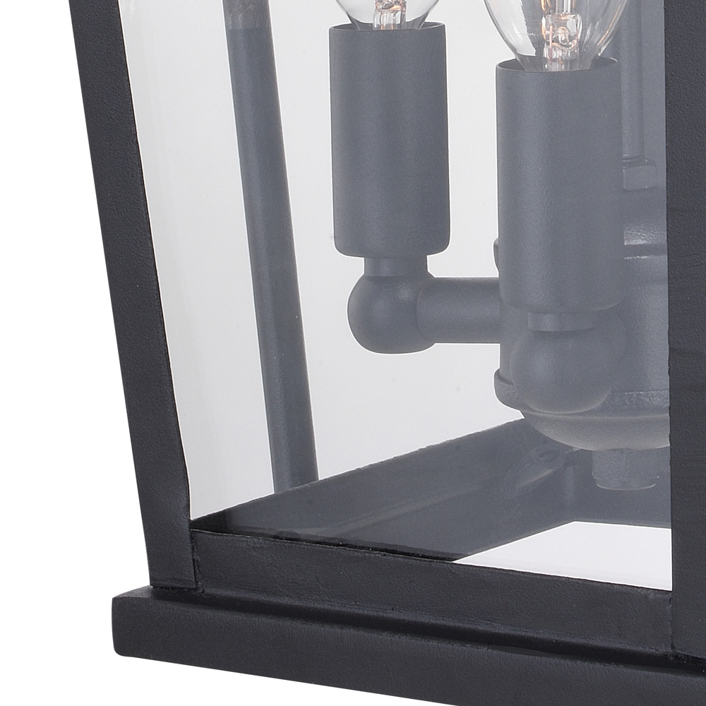 The colonial inspired Lexington collection is steeped in traditional charm. A textured black finish coupled with tapered, clear glass panels are further enhanced with a curved metal lantern handle creating a carriage house lantern look. Combine that with vintage Edison style filament bulbs to complete the look. This outdoor wall light is ideal for your porch, entryway, garage, or any other area of your home.